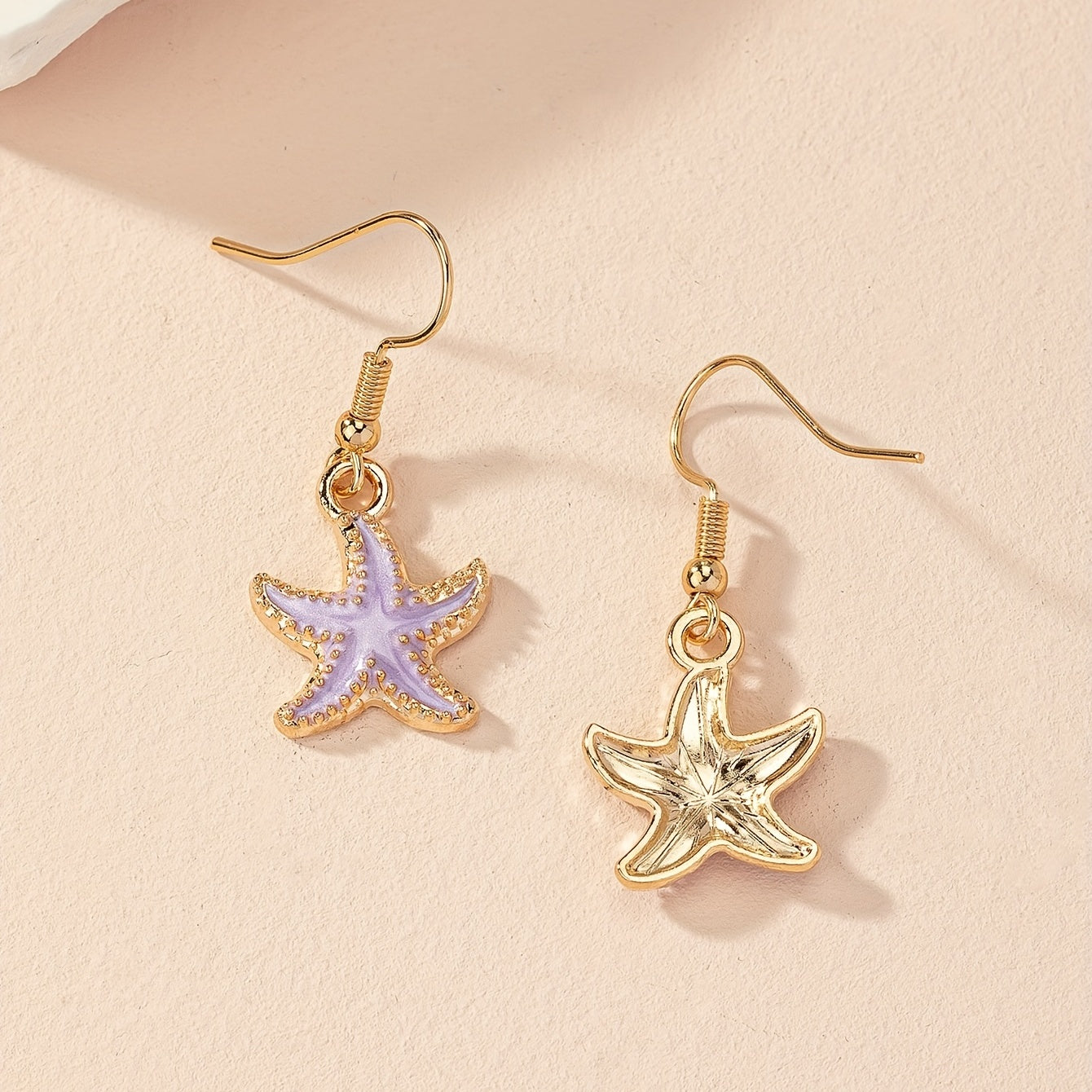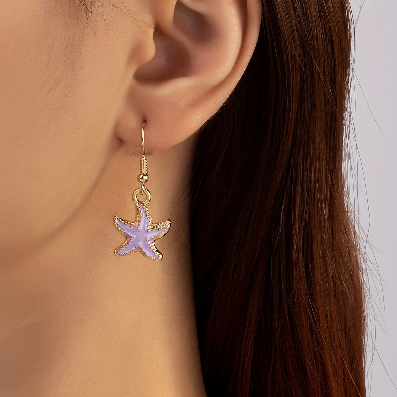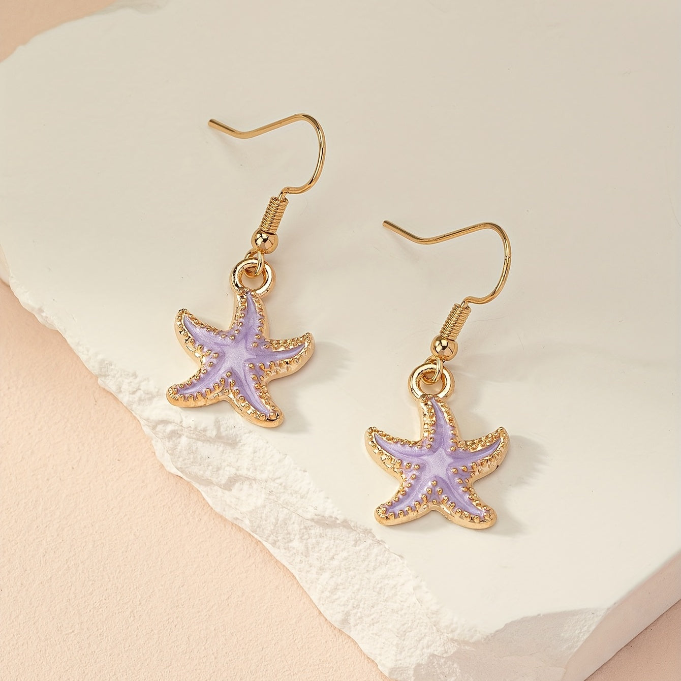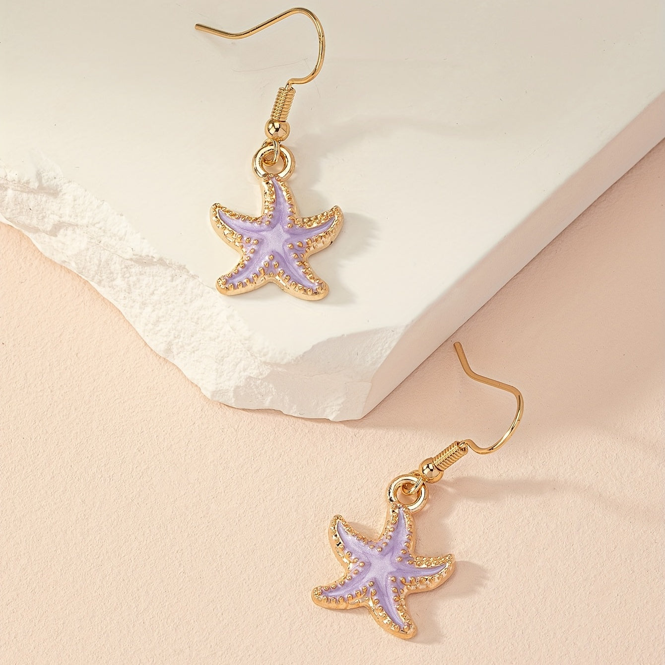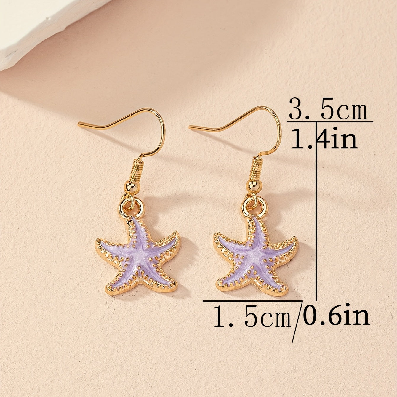 These charming purple starfish dangle earrings are perfect for adding a bohemian ocean vibe to your outfit. Made of zinc alloy, they make a creative and unique gift for women, ideal for ocean-themed parties or as everyday ornaments.