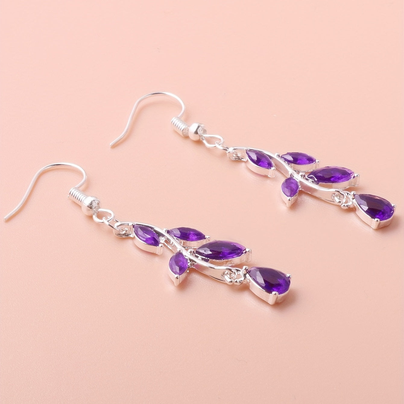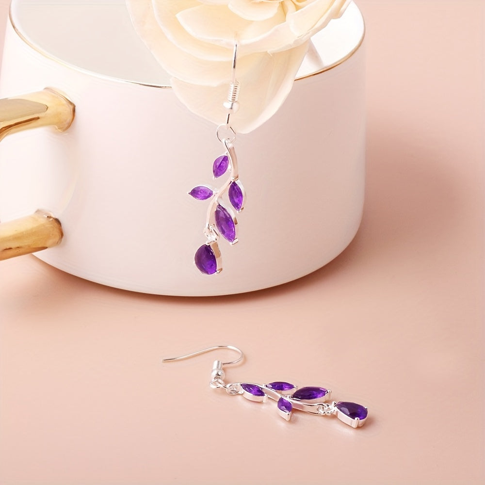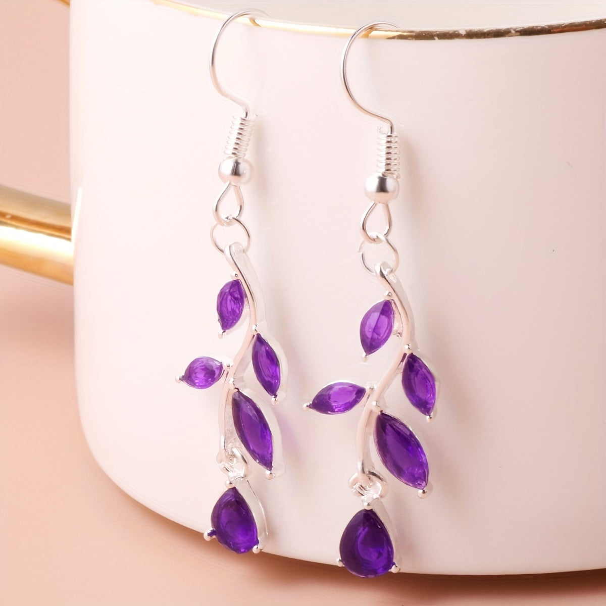 Add a pop of color to your outfit with these elegant purple synthetic gemstone long earrings designed for women.