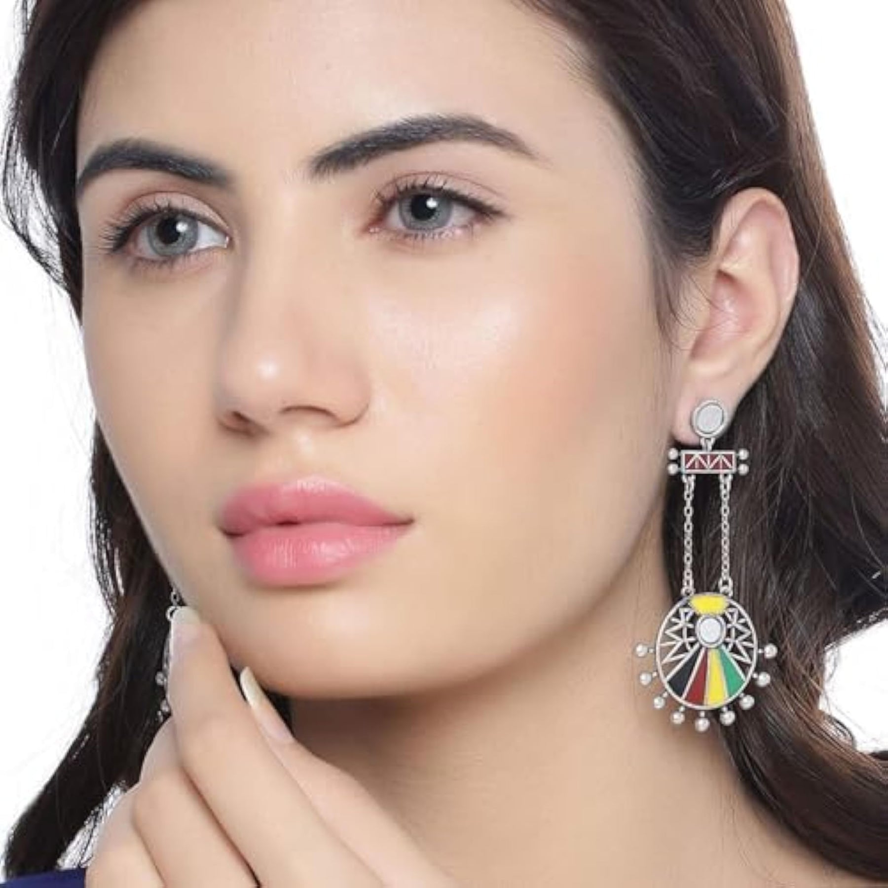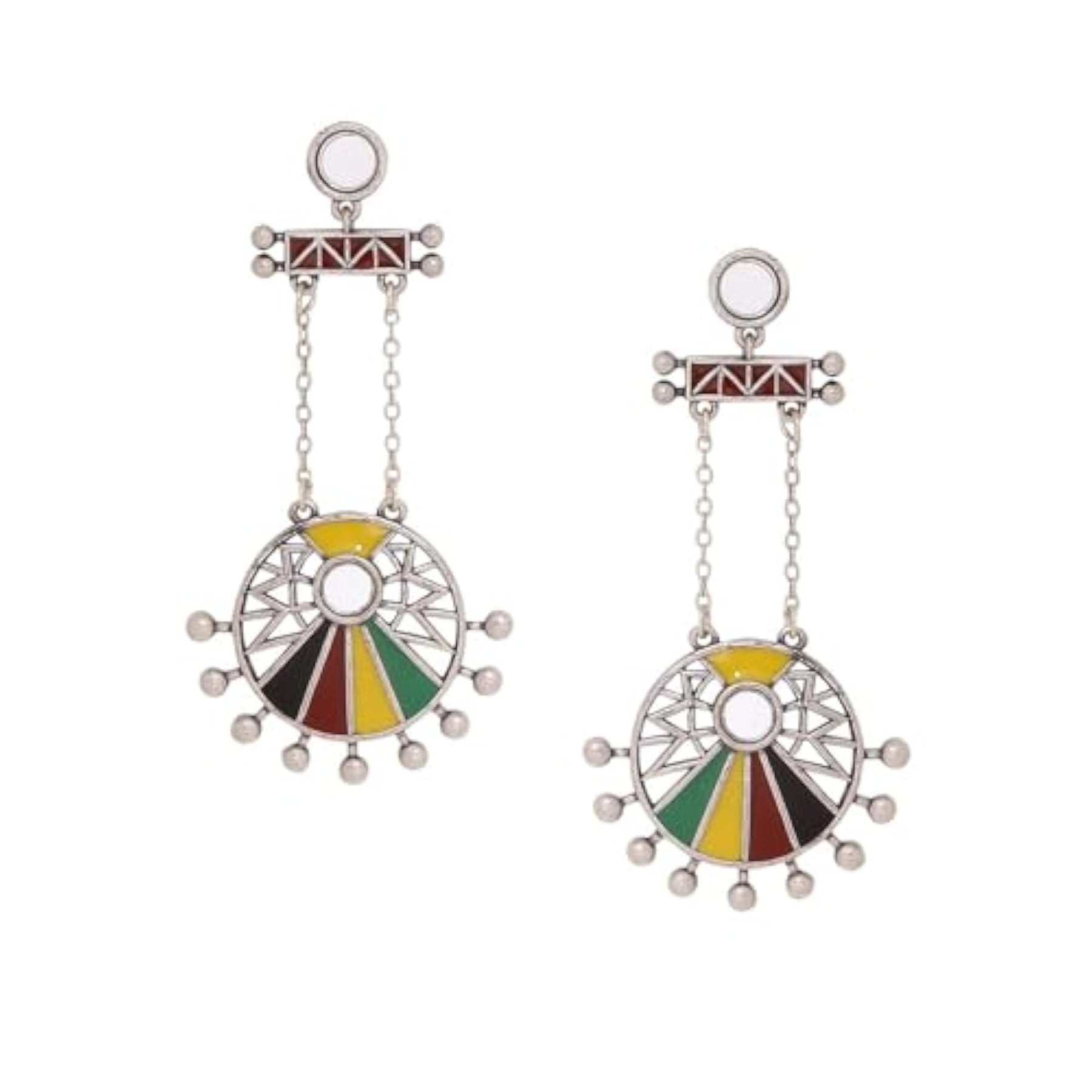 Elegant and stylish drop earrings featuring intricate Rabaari circles design.