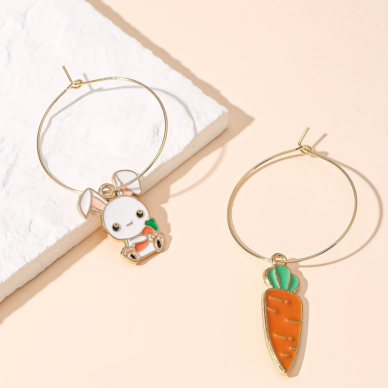 • Adorable enamel earrings with rabbit and carrot design