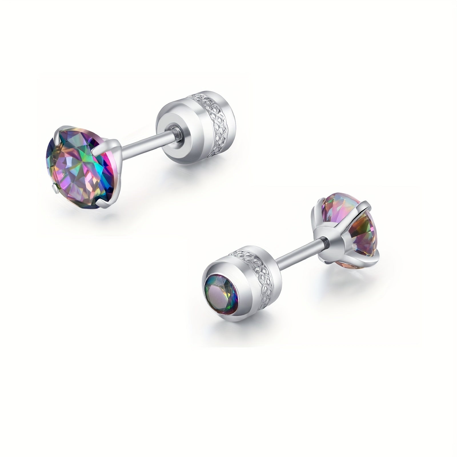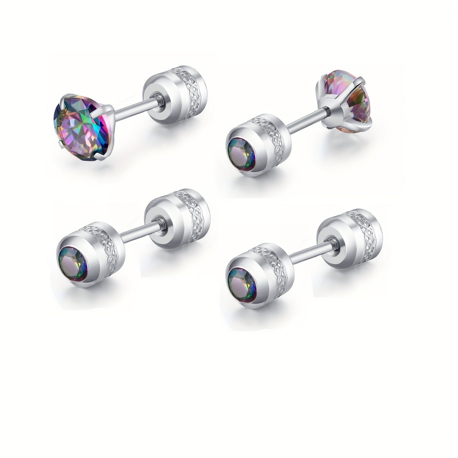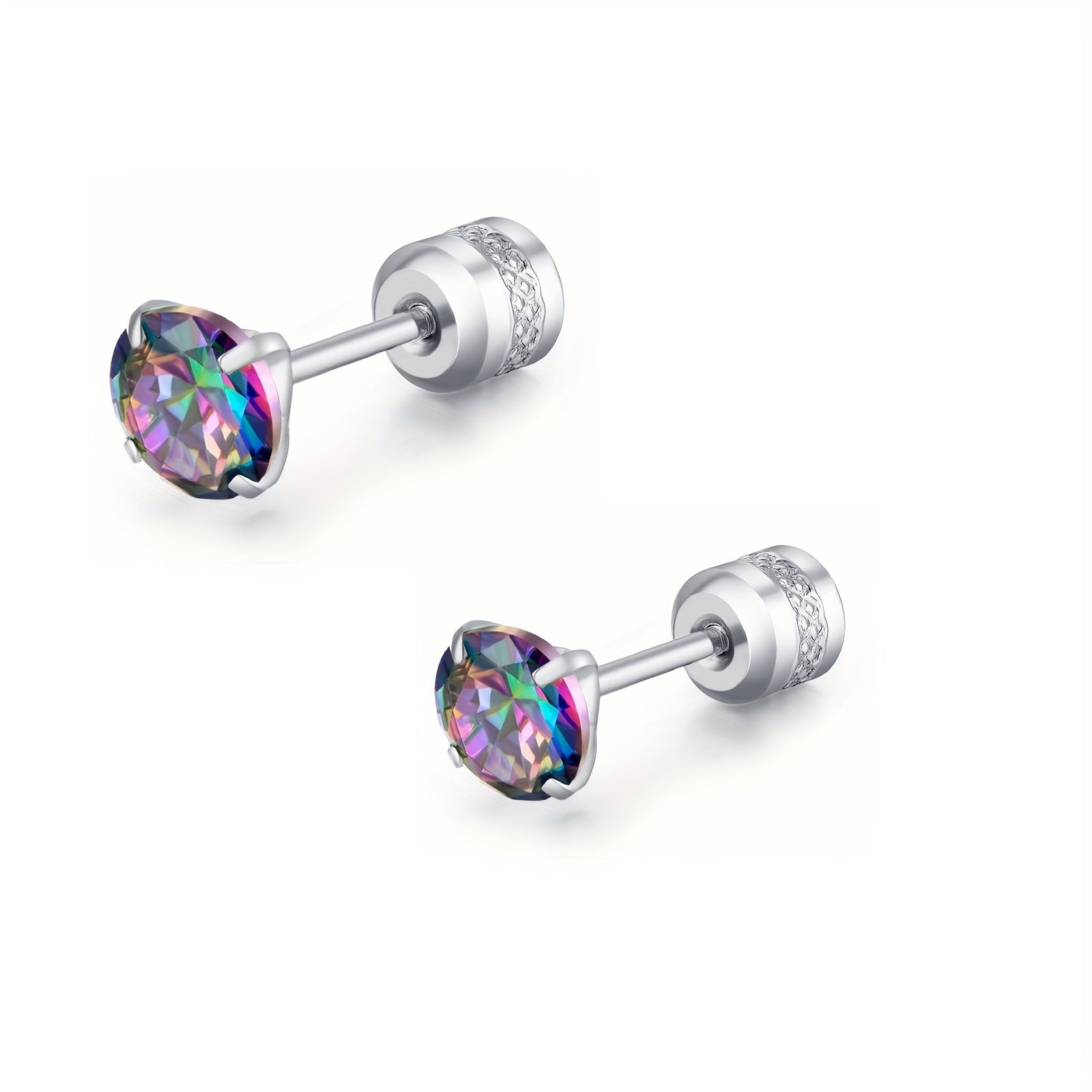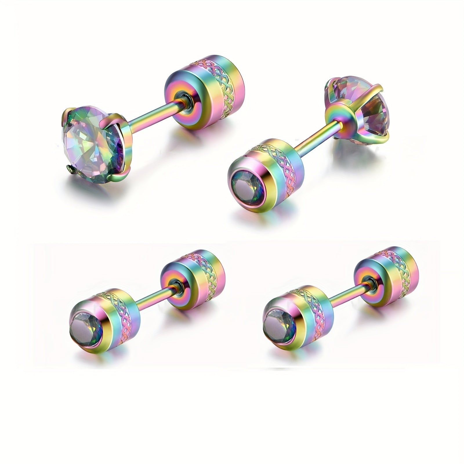 These stylish barbell stud earrings feature rainbow cubic zirconia stones. Perfect for men who want a pop of color in their accessories.