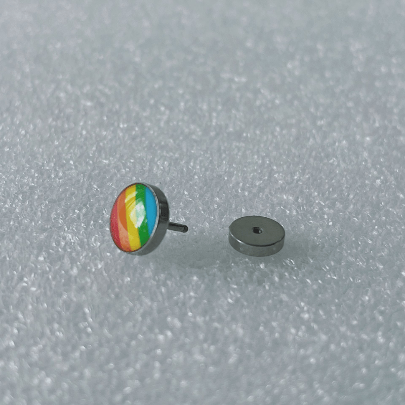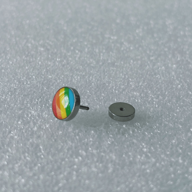 Add a pop of color to your look with these rainbow oil dripping ear studs made from stainless steel. Perfect for adding a fun and vibrant touch to any outfit.