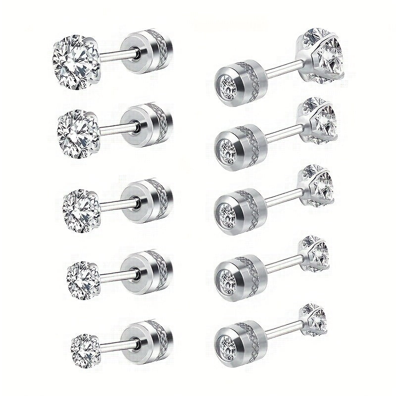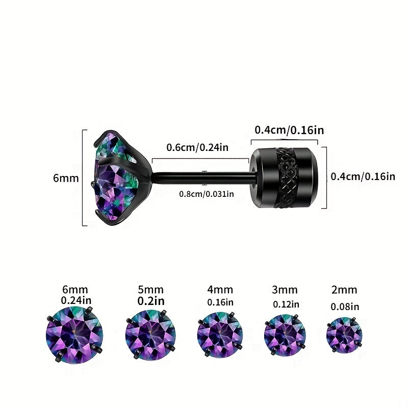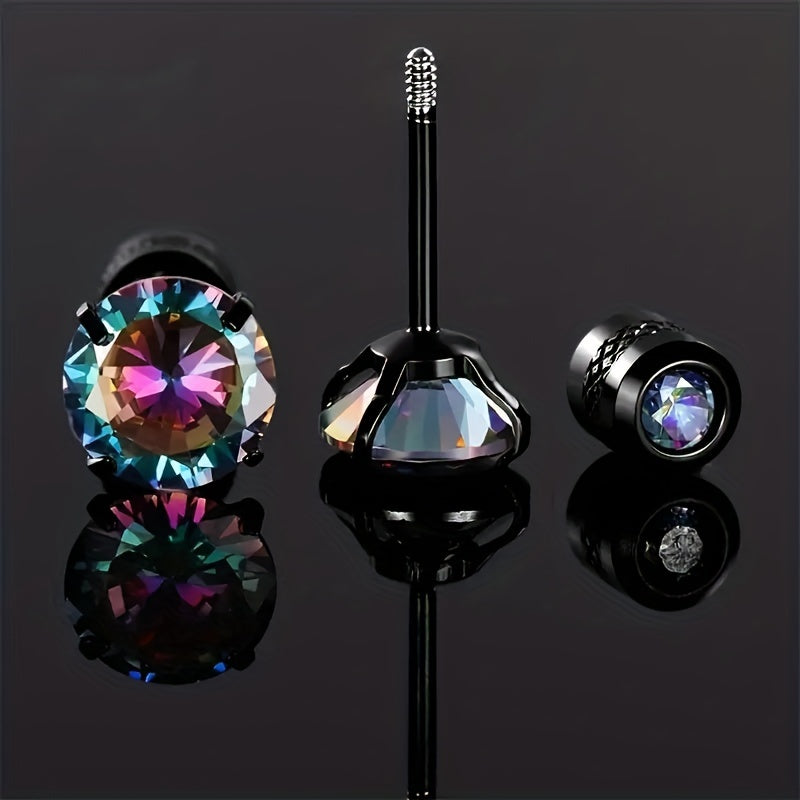 These stylish stud earrings feature a sense rainbow zircon design in titanium steel. Hypoallergenic and durable, perfect for men and women.