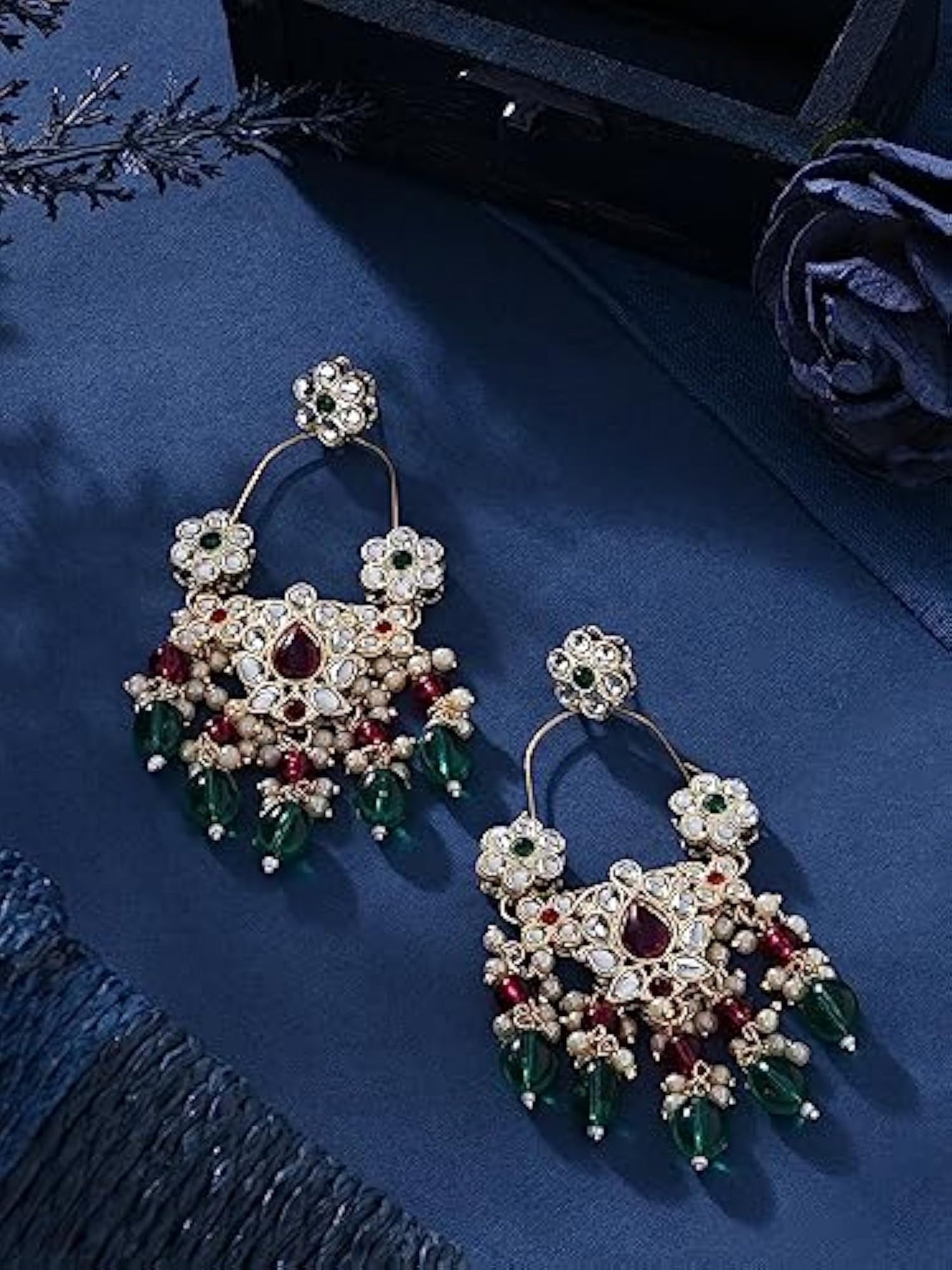 Elegant and vibrant Rani Pink Kundan & Beads Dangle Earring, perfect for any special occasion.