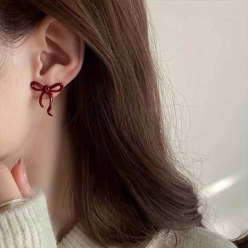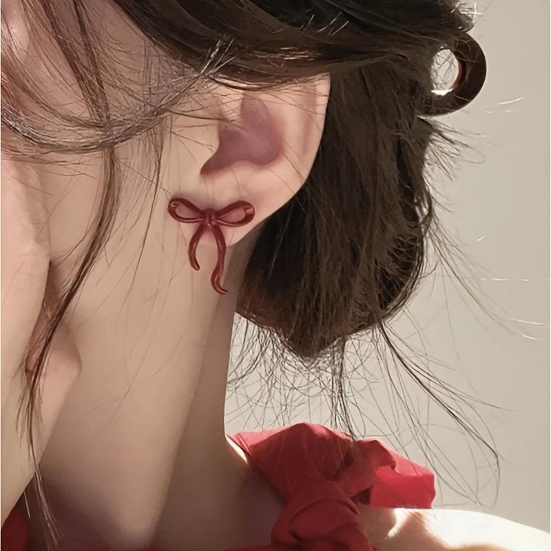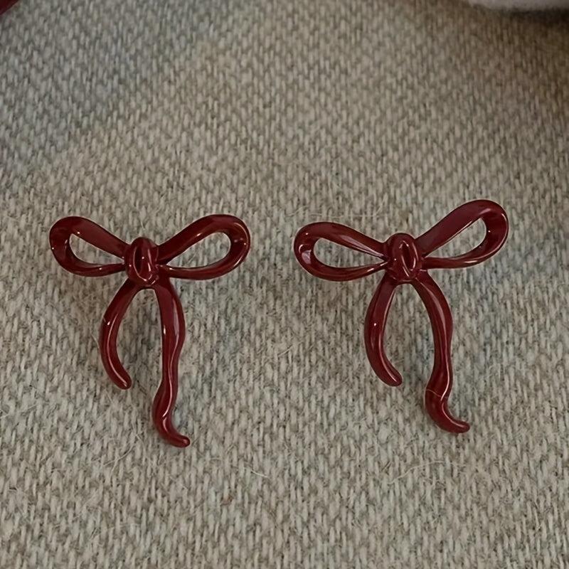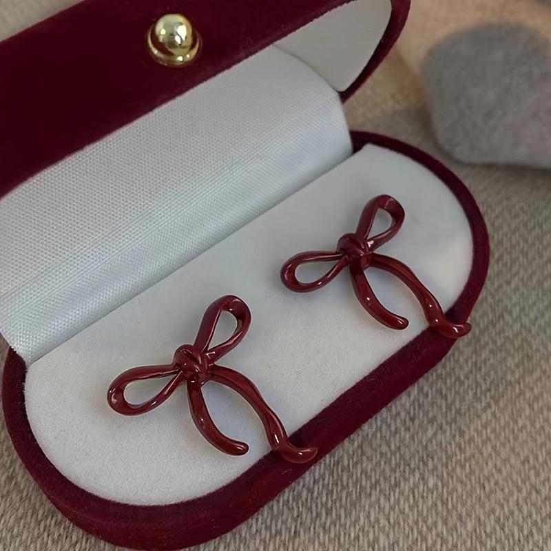 These elegant red bow stud earrings are crafted from zinc alloy, suitable for daily wear and parties. They make an ideal gift for any occasion.