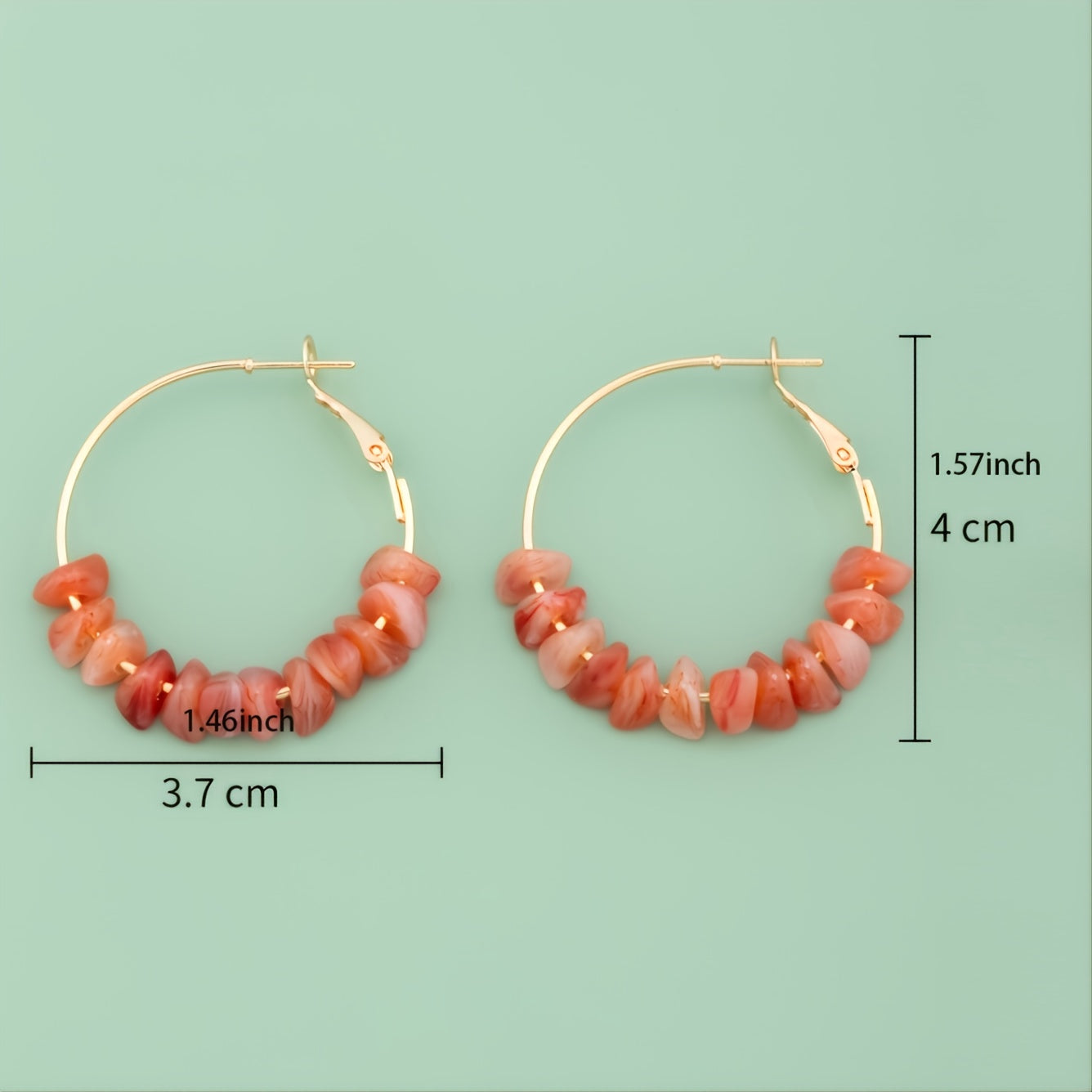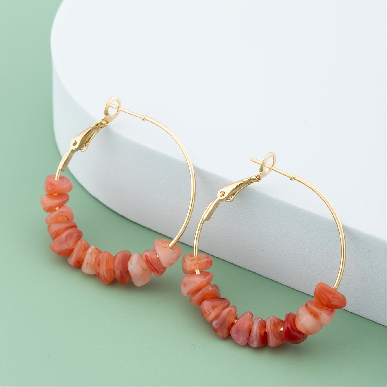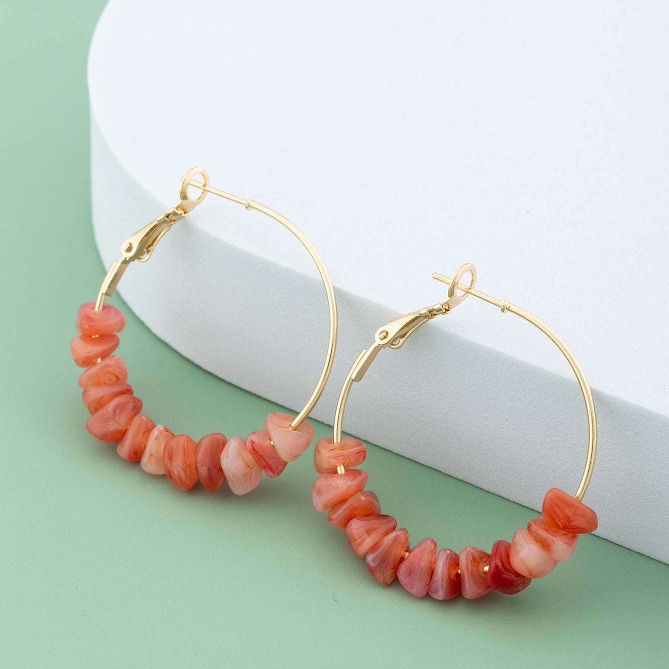 Enhance your look with these stunning red coral acrylic round earrings featuring 14K gold plating.