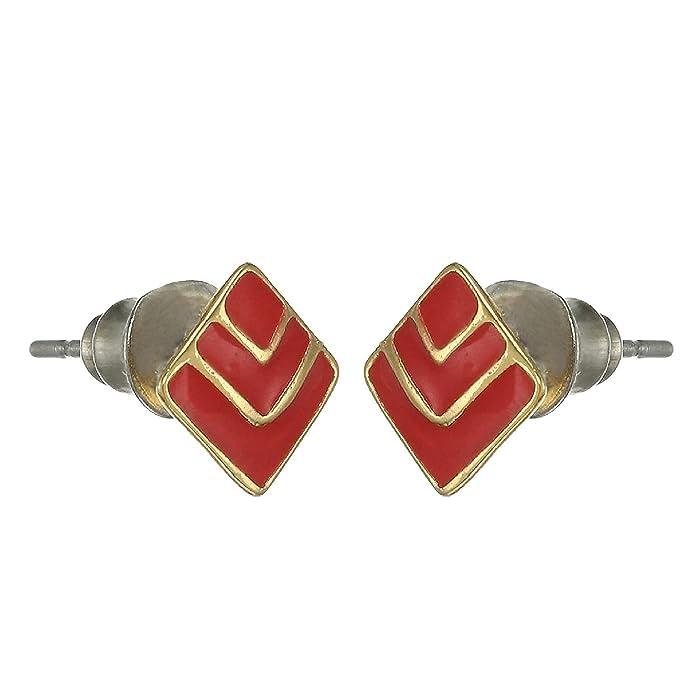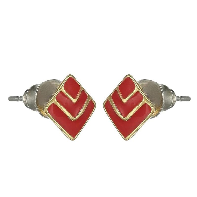 Add a pop of color to your look with these chic red enamel diamond stud earrings. Plated in 24K non-precious metal, these earrings are perfect for adding a touch of elegance to your outfit.