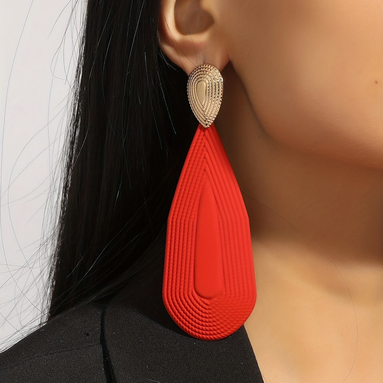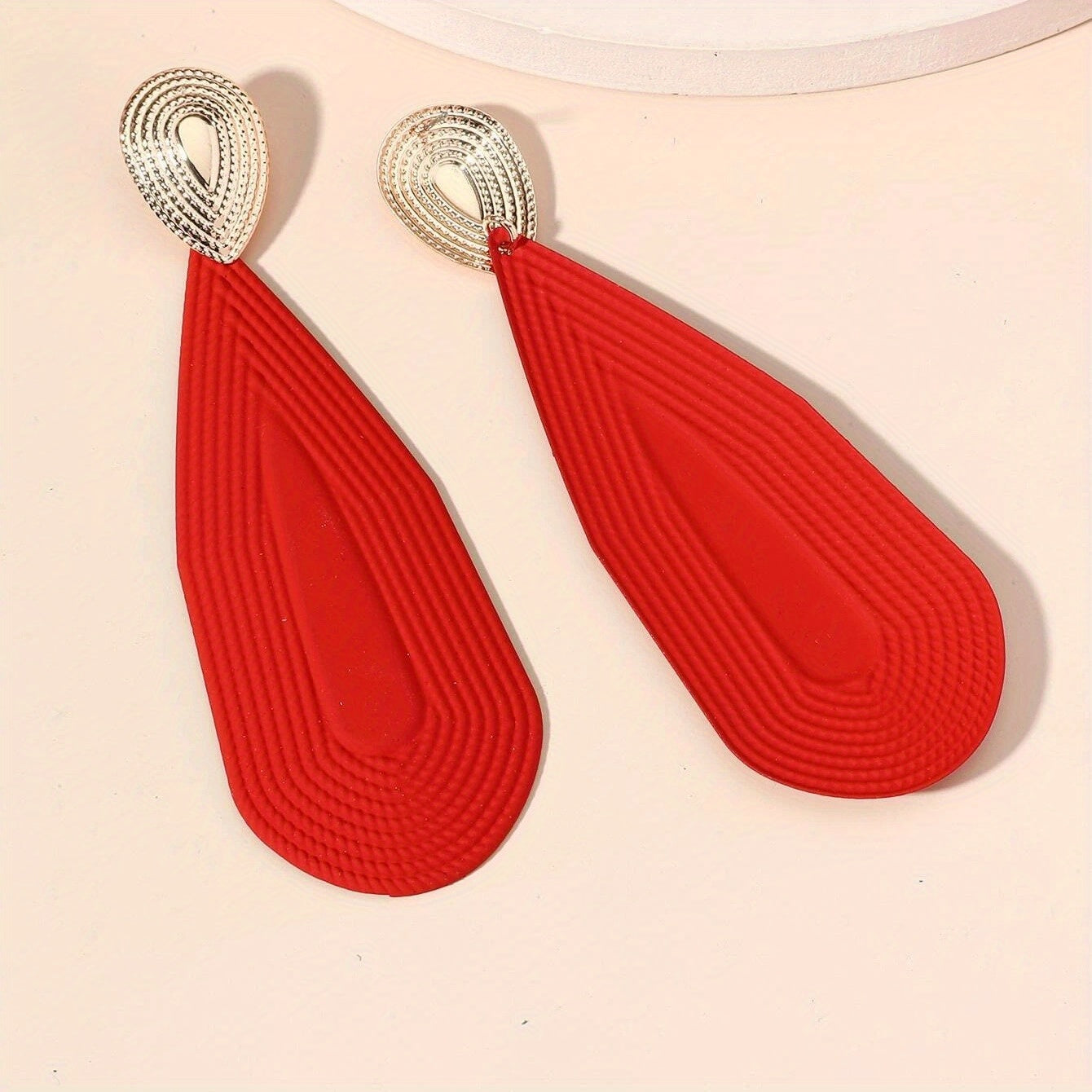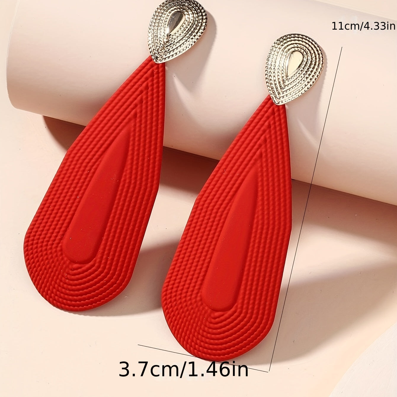 Add a touch of glamour to your look with these red and golden geometric shape dangle earrings. Perfect for a sexy leisure style, these earrings make a great gift for the fashionable female in your life.