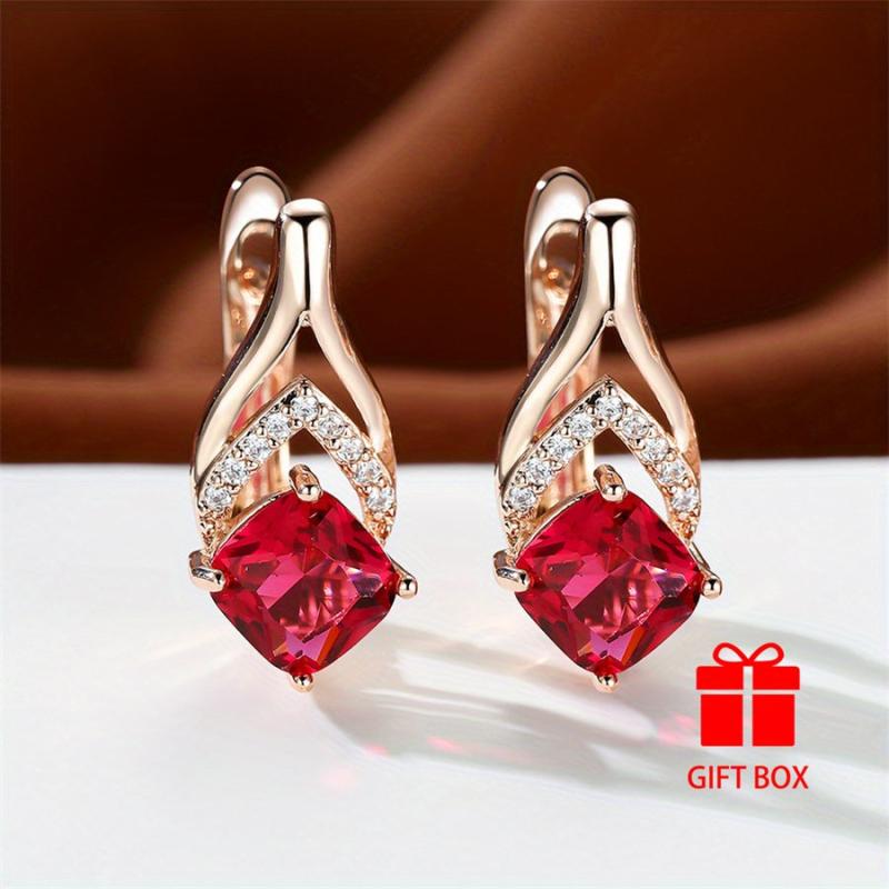 Add a pop of color to your outfit with these red synthetic zirconia earrings. Perfect for weddings, parties, holidays, or daily wear. These earrings are durable and stylish, making them a versatile accessory.
