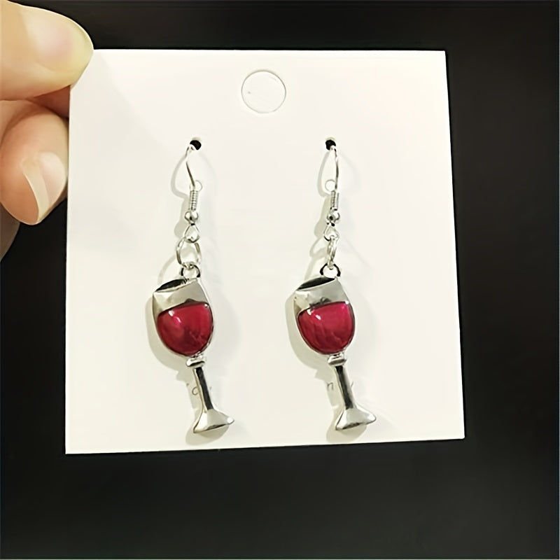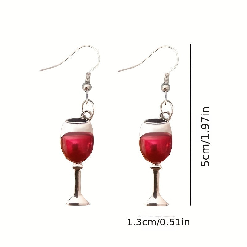 These quirky red wine bottle earrings are a fun and unique accessory for women and girls. Perfect for wine lovers or anyone looking for a playful touch to their outfit.