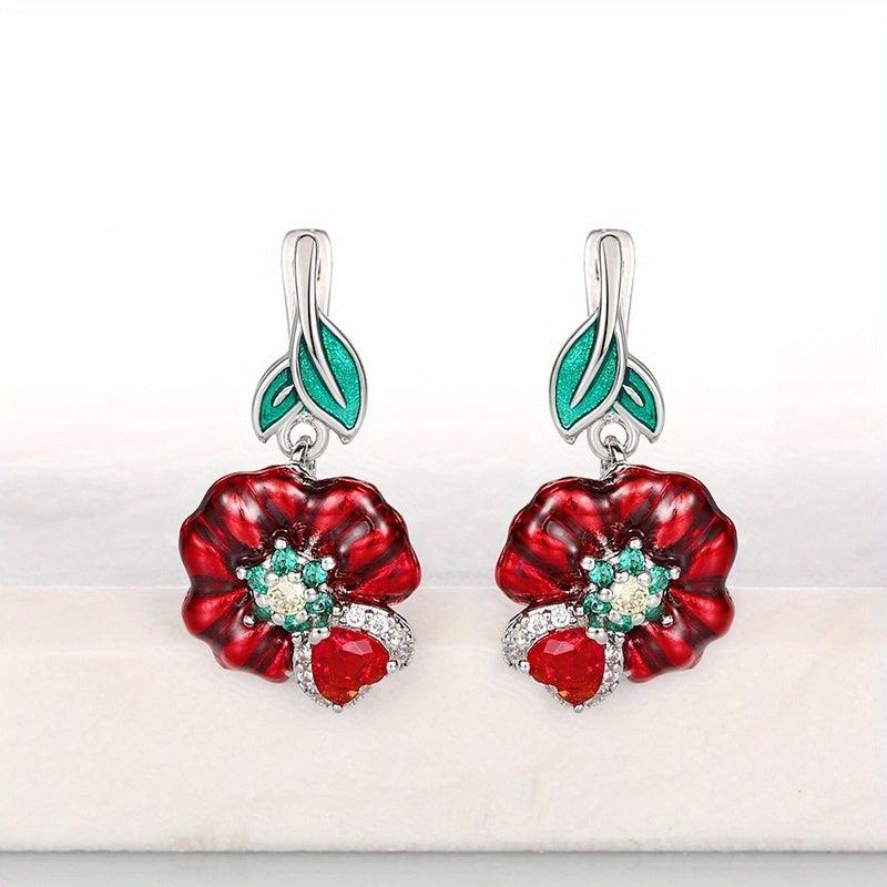 Elegant red flower zircon dangle earrings perfect for wedding parties. Enhance your look with these beautiful earrings.