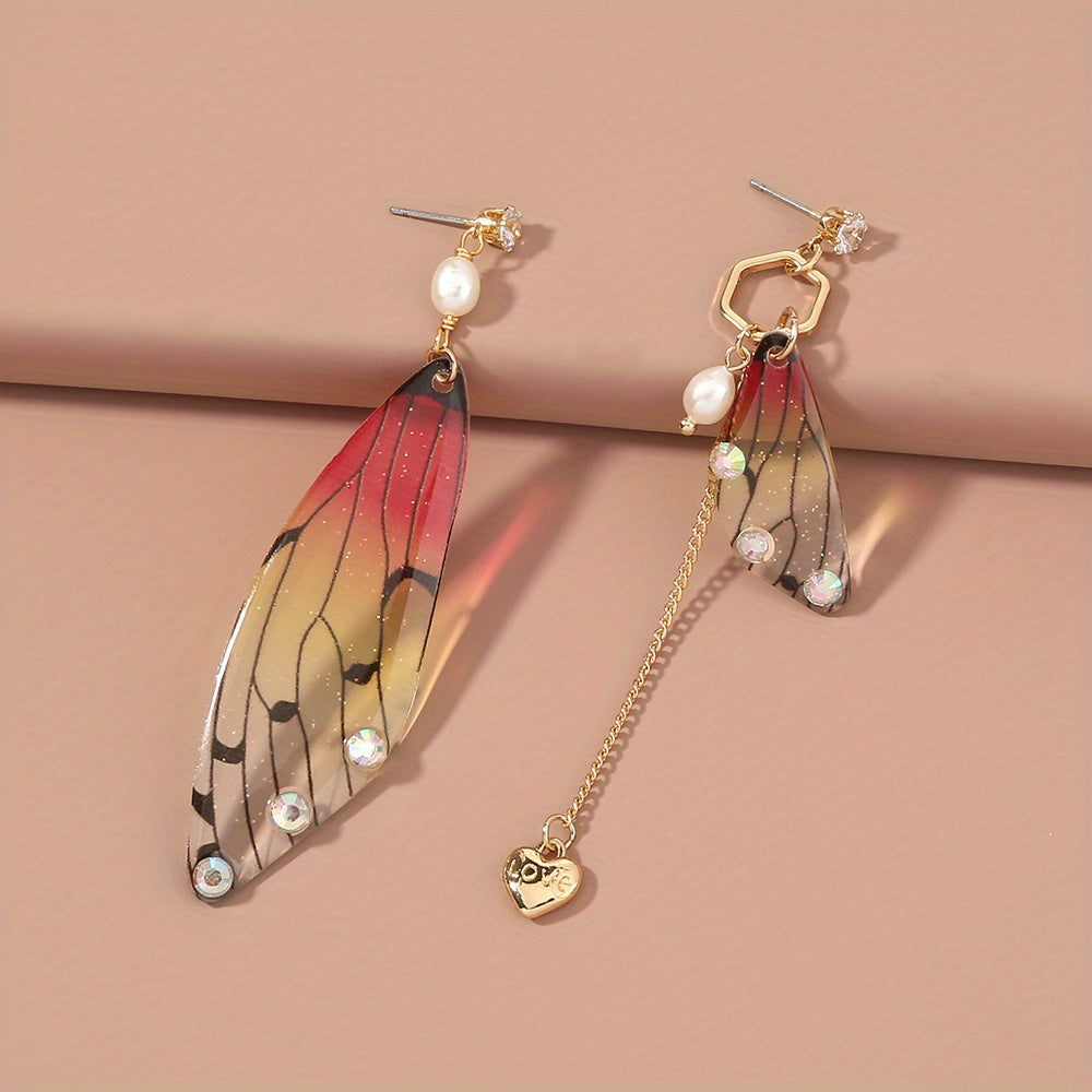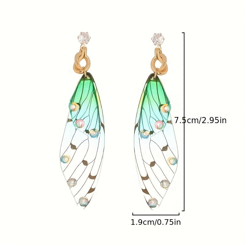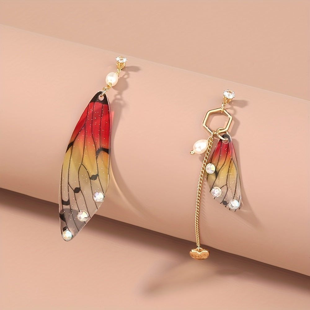 These minimalist style earrings feature resin butterfly wings with sparkling rhinestone decorations, making them a creative gift idea for females.