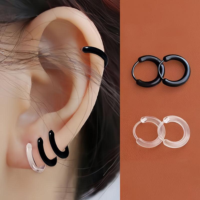 These resin hoop earrings are perfect for daily wear with no piercing required. They offer a comfortable and secure fit, ideal for women. Made of hypoallergenic material, these lightweight earrings are a stylish addition to any outfit.