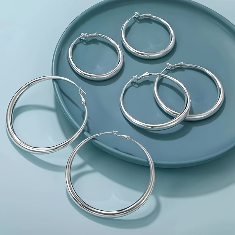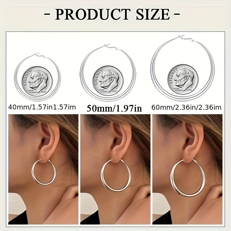 Add a touch of retro charm to your daily style with these 925 earrings featuring a glossy circular pattern. Available in 40mm, 50mm, and 60mm sizes.