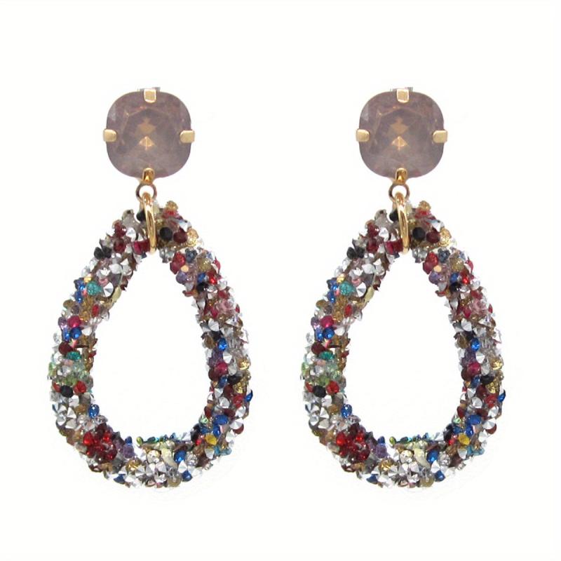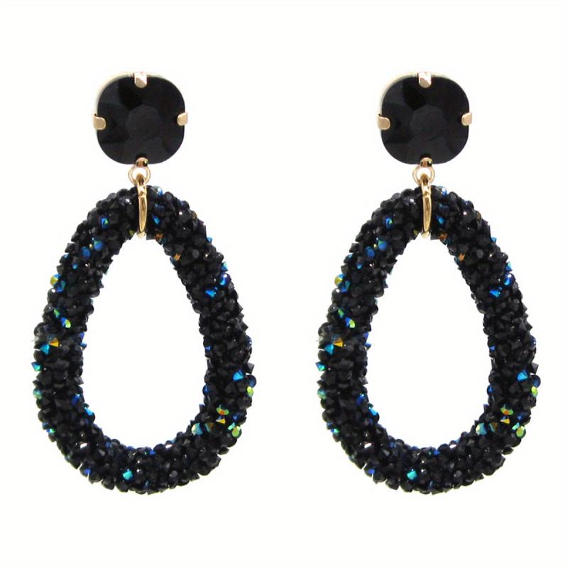 These hollow teardrop shape earrings are adorned with full rhinestones and exude a vintage boho style. The perfect gift for any fashion-forward woman.