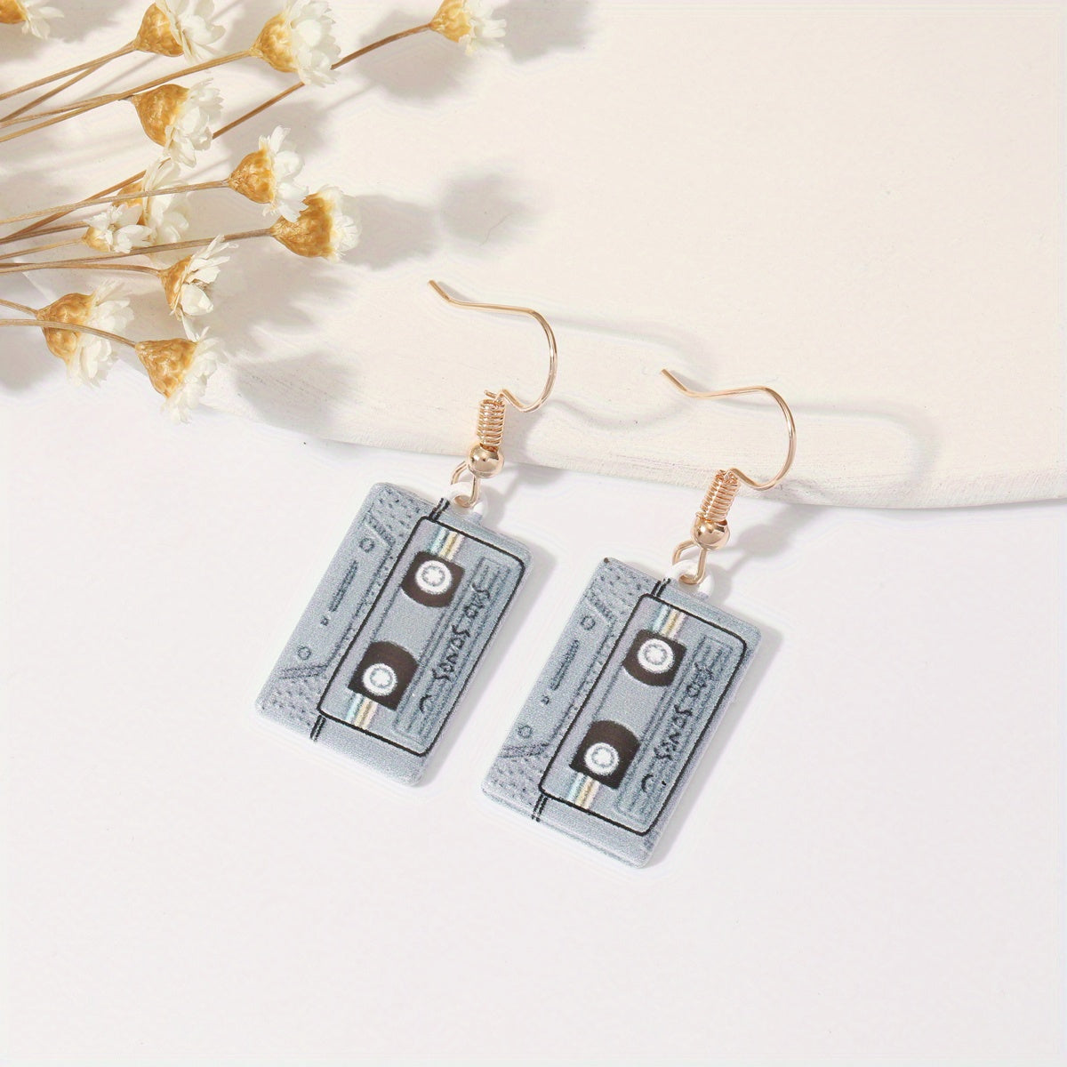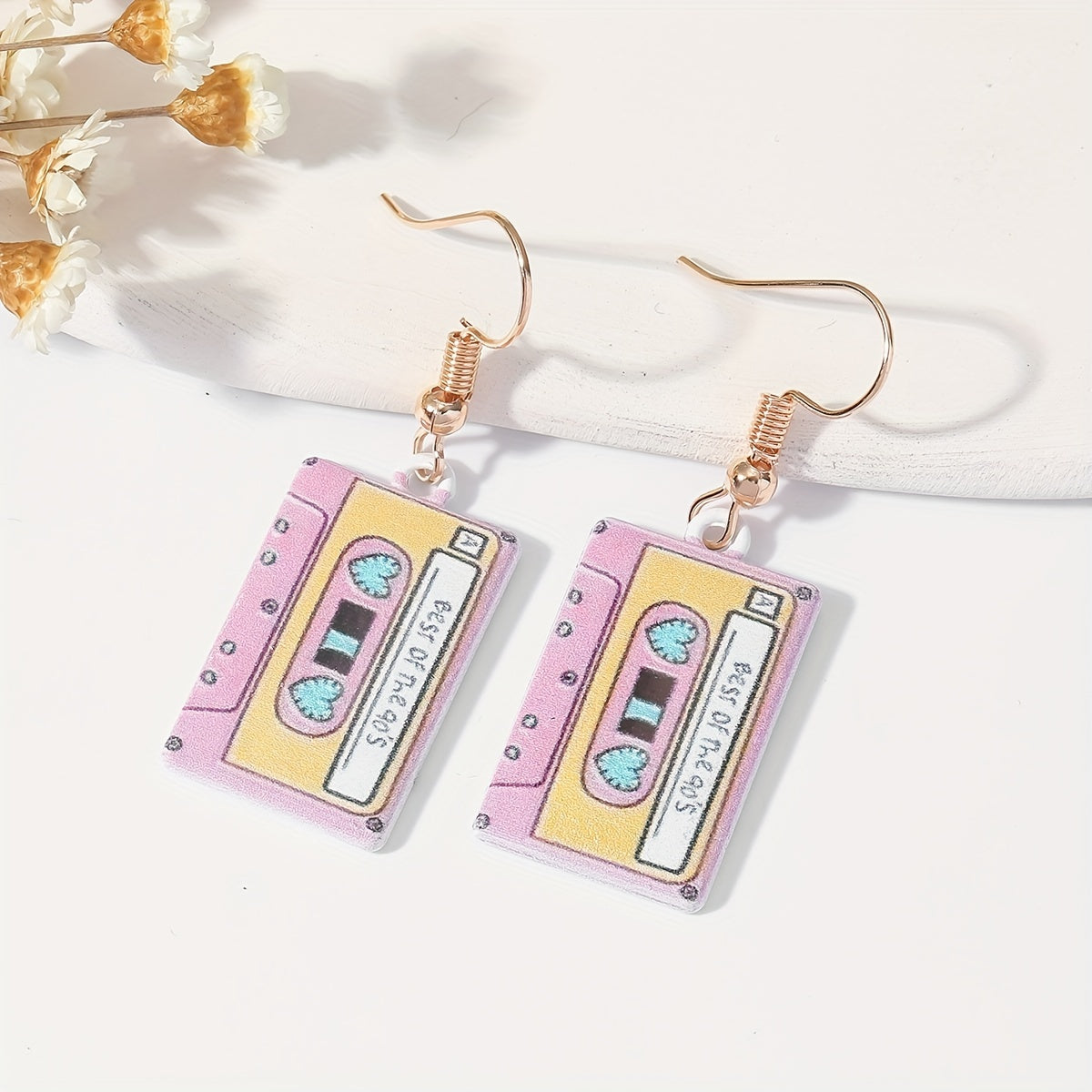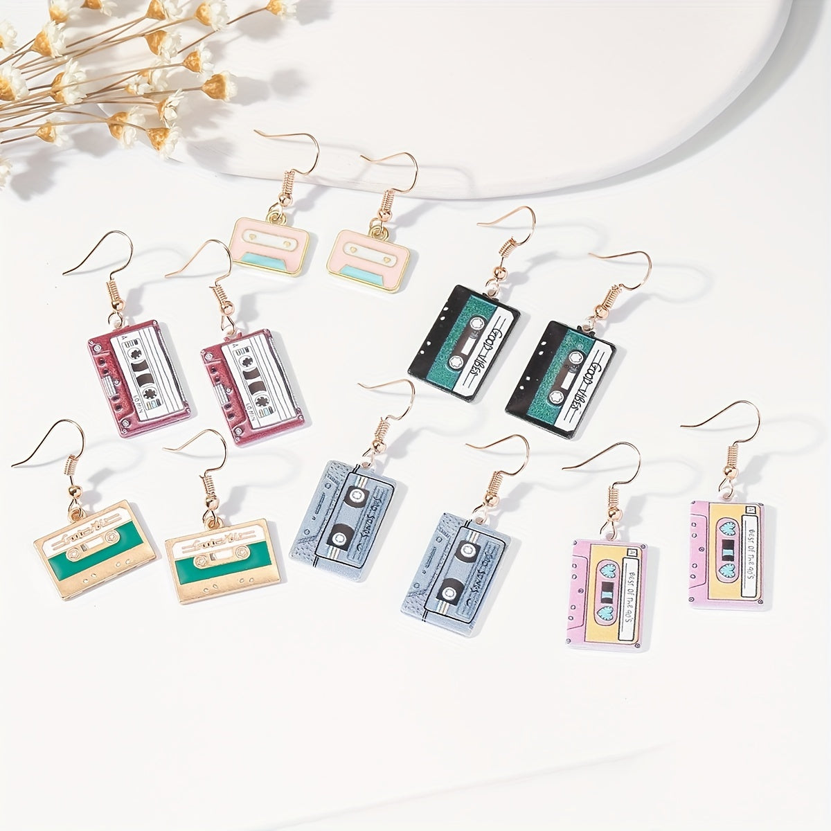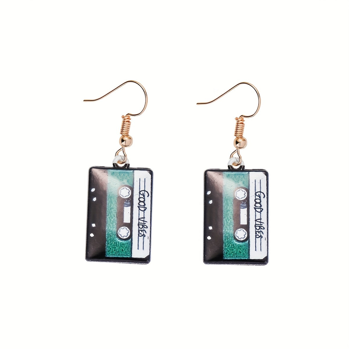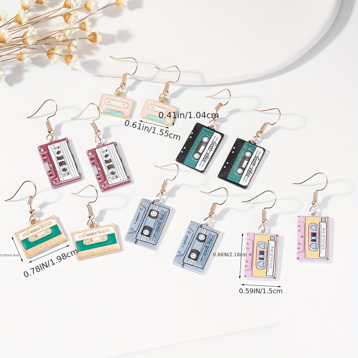 Unique and fun cassette tape earrings that bring a touch of nostalgia. Made with oil alloy, these earrings are a playful addition to your jewelry collection.