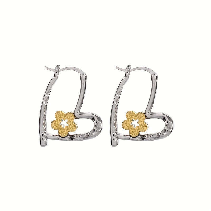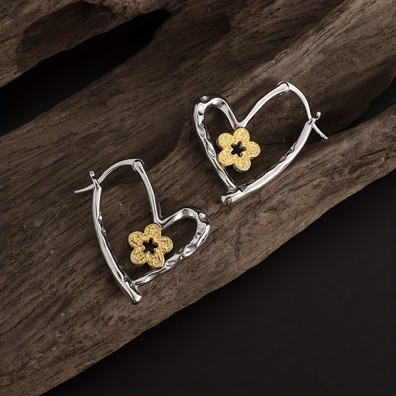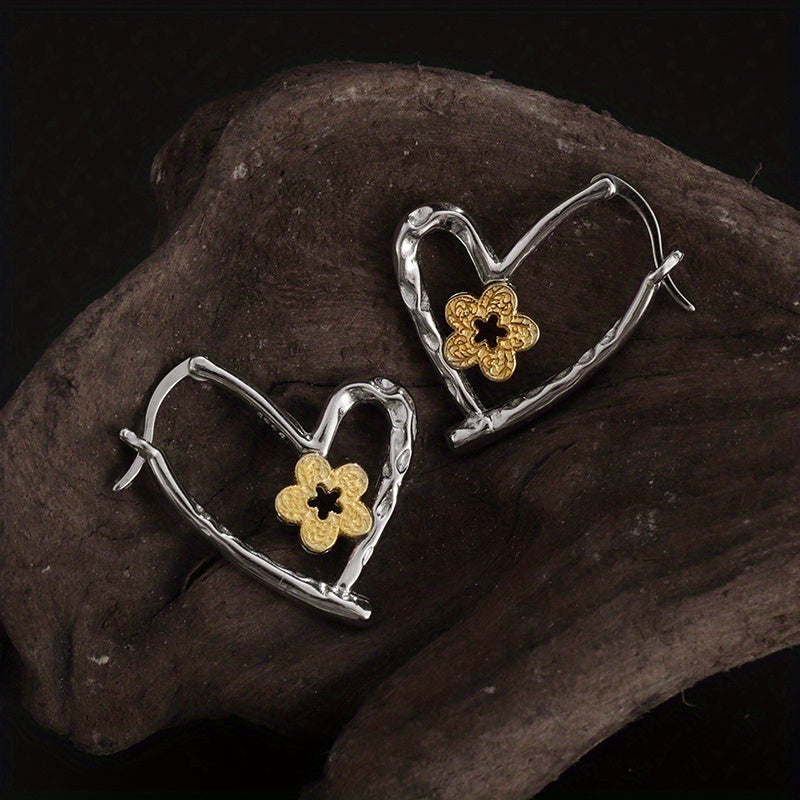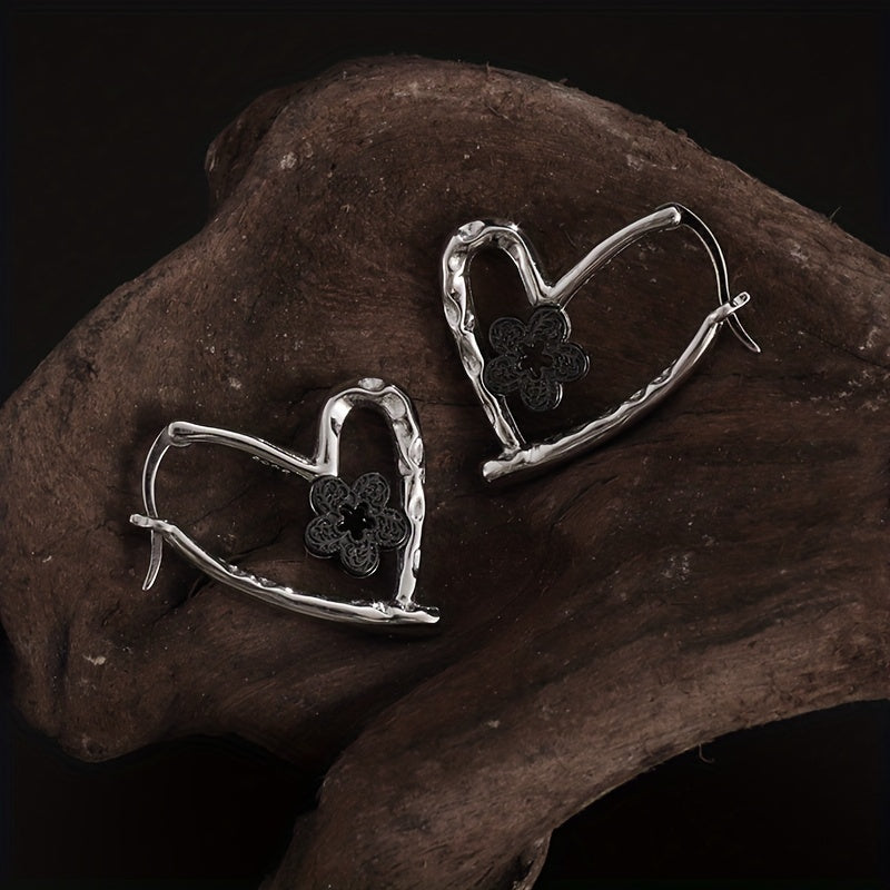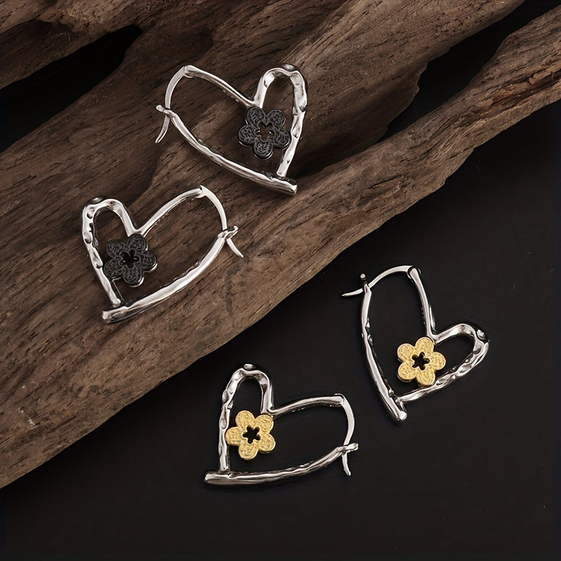 Retro Heart Shaped Flower Earrings Couple Earrings - Hip Hop Party Jewelry