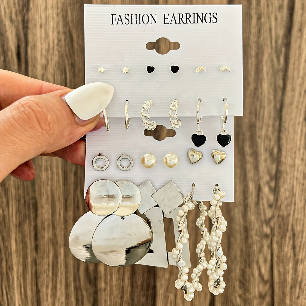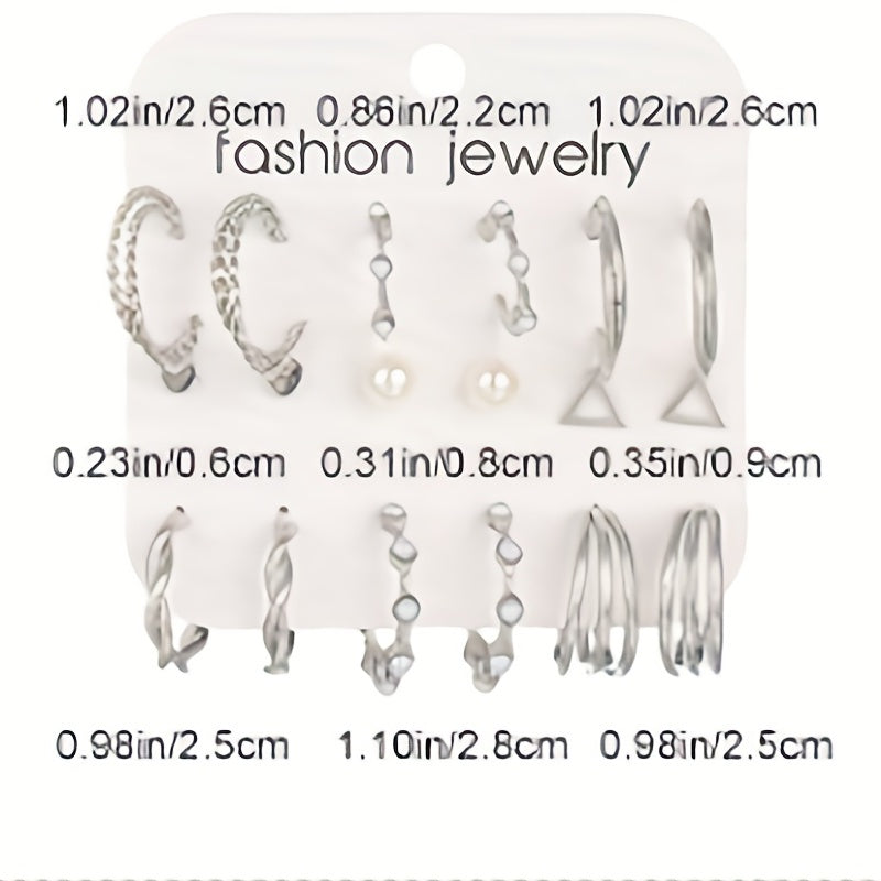 This earring set features stylish retro minimalist design with alloy material and 14K gold plating, perfect for daily wear and accessorizing your outfits.