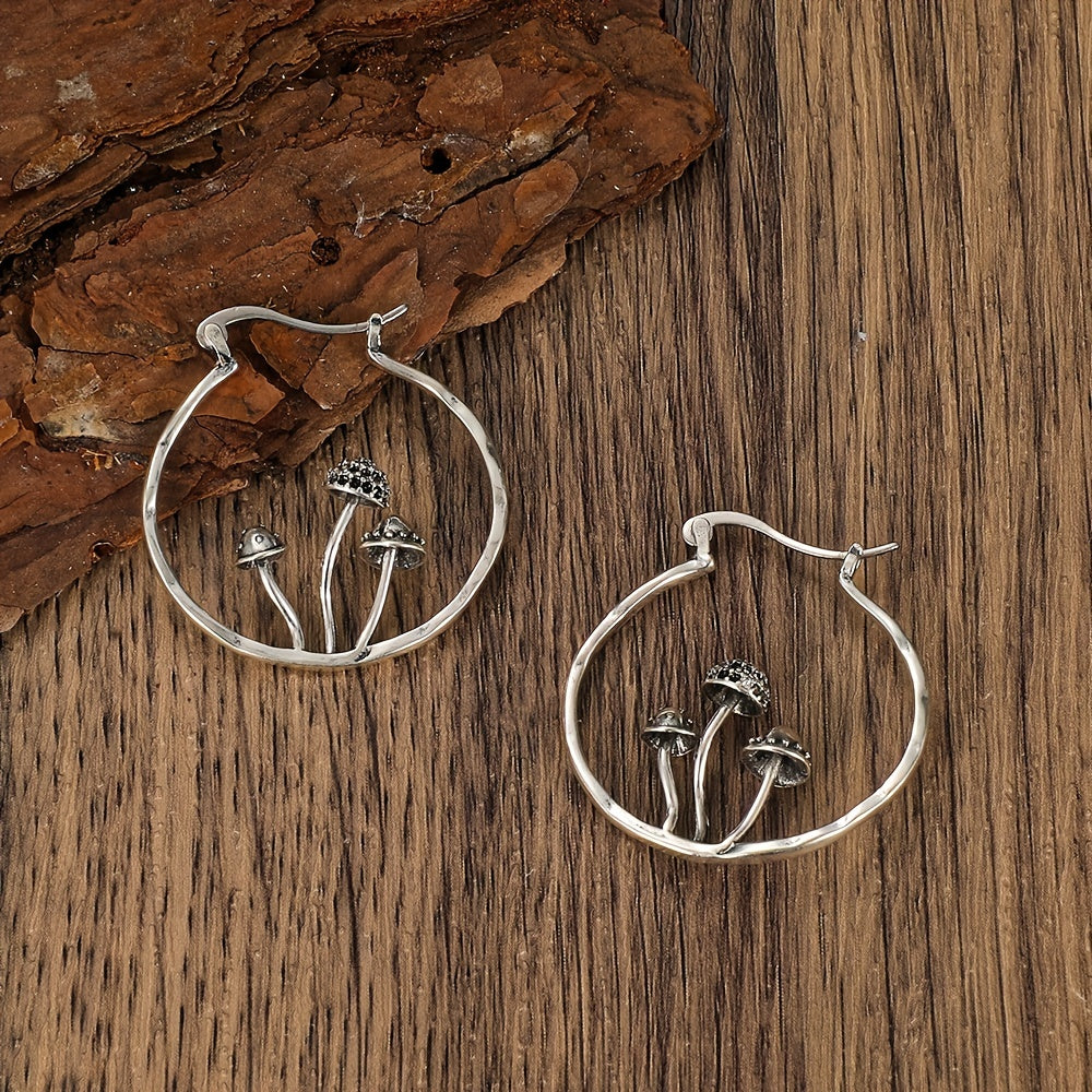 Elevate your look with these stylish hoop earrings featuring a retro mushroom design. Made from high-quality alloy with a 14K gold plating, they make a perfect gift for her.