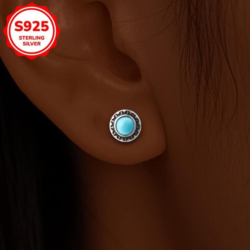 Add a touch of retro charm with these unique stud earrings featuring inlaid synthetic turquoise. Made from 925Silvery, these earrings are perfect for daily wear.