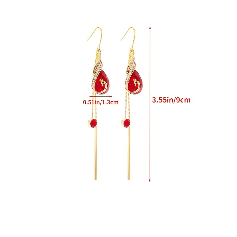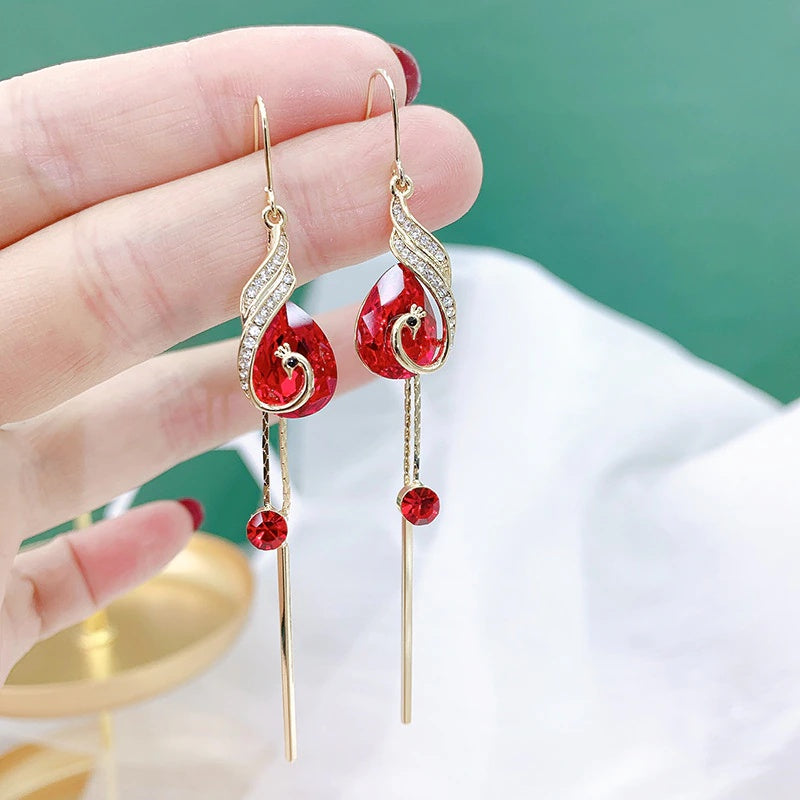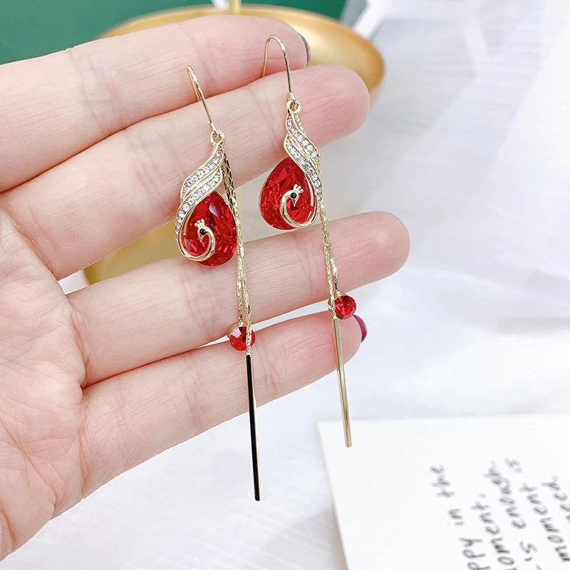 Elegant peacock crystal tassel earrings, perfect for bridal wear or as a gift. Stand out in retro style!