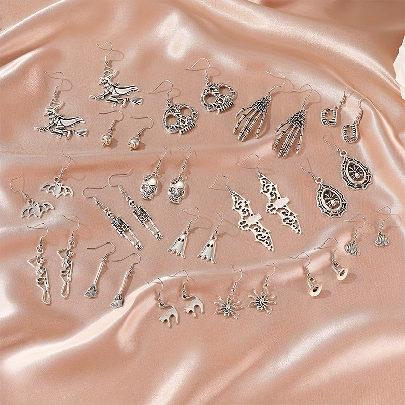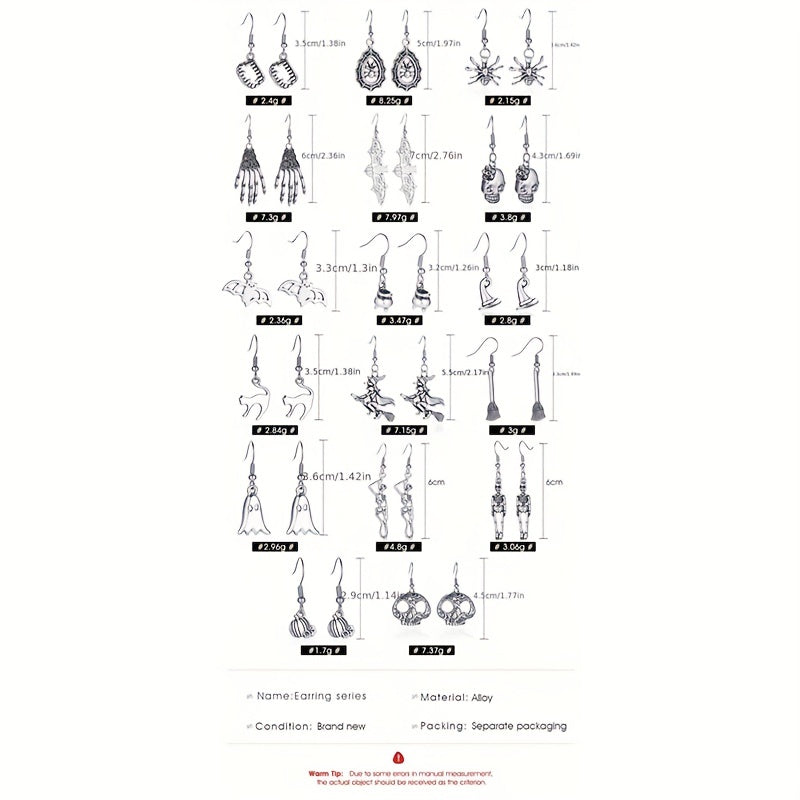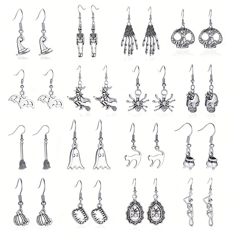 These Halloween dangle earrings feature a retro design with skull, bat, and spider shapes. Made of high-quality alloy, these earrings are the perfect accessory for a goth style look. Ideal gift for the creative female in your life.