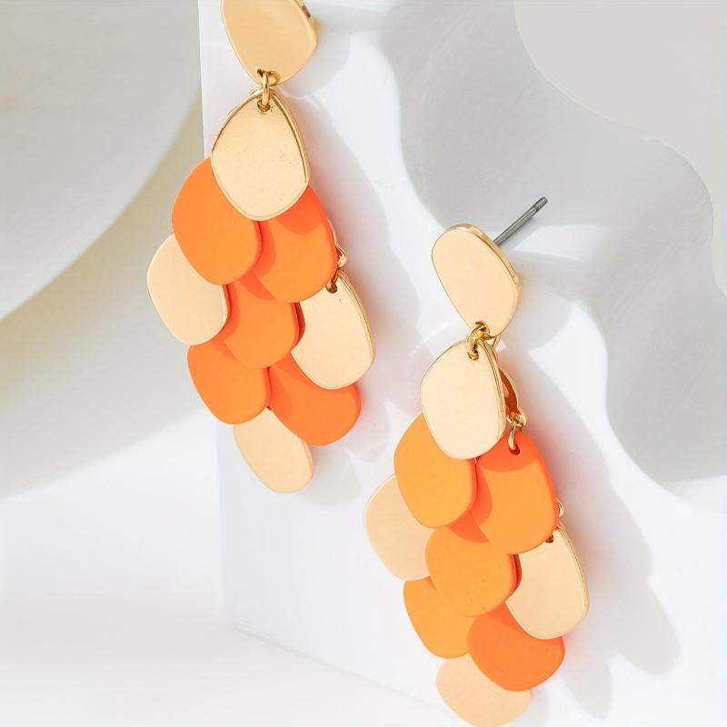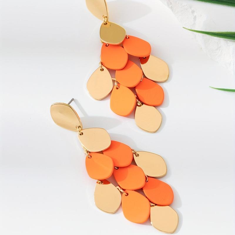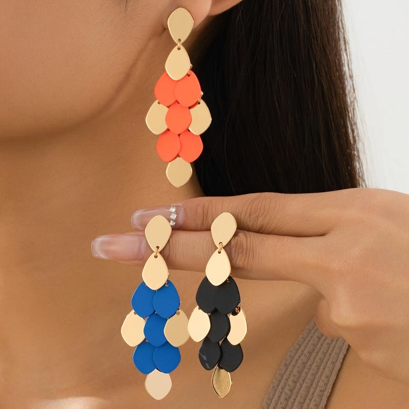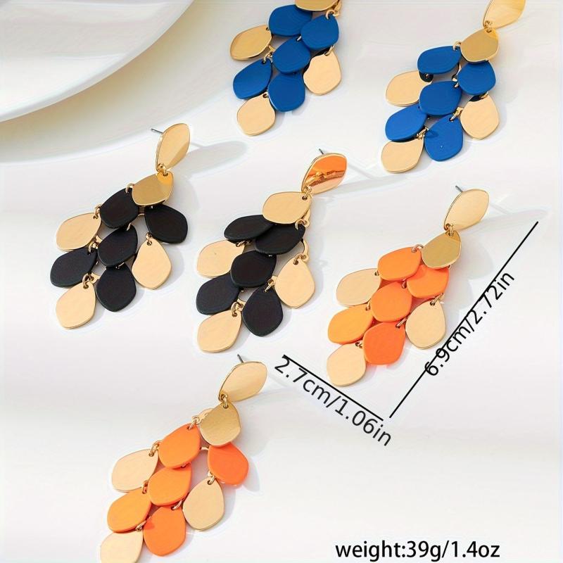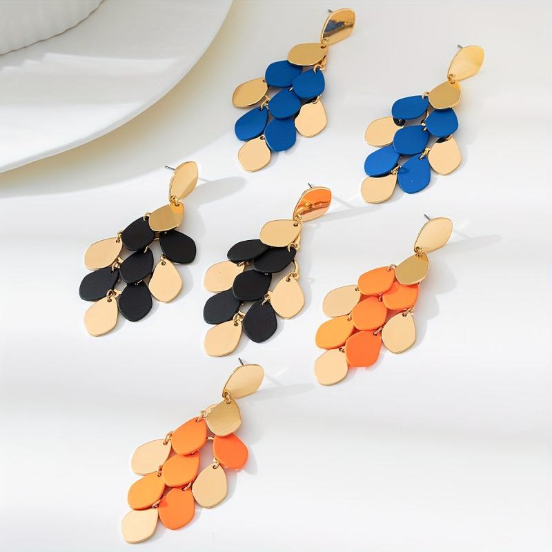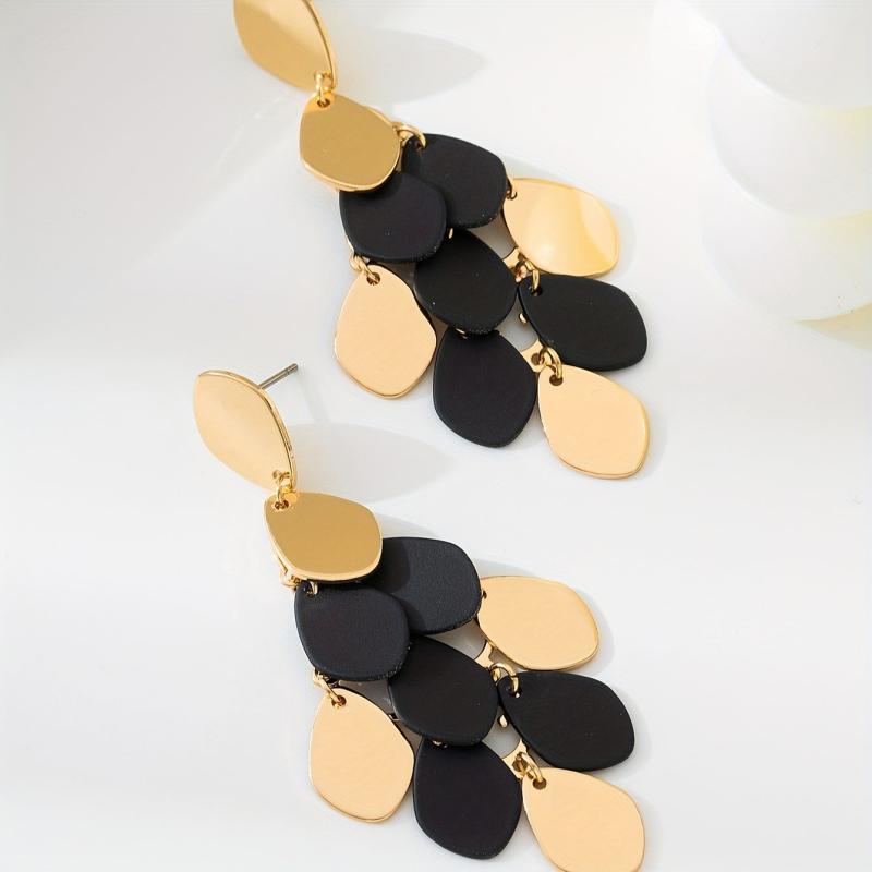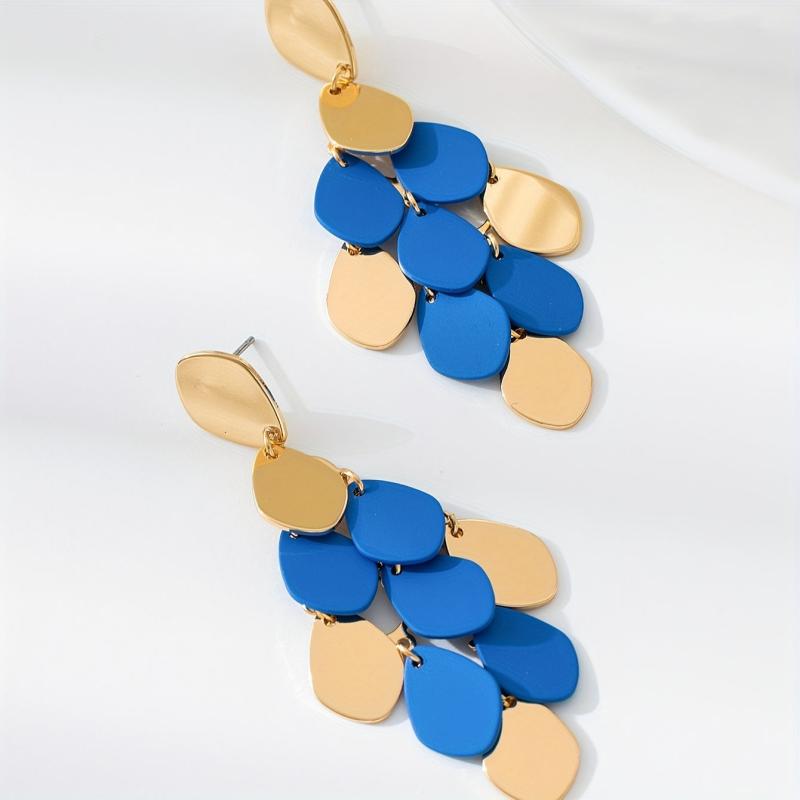 These 2pcs retro long metal earrings feature a unique teardrop design with stitching details and tassels, perfect for daily wear, gift giving, and parties.