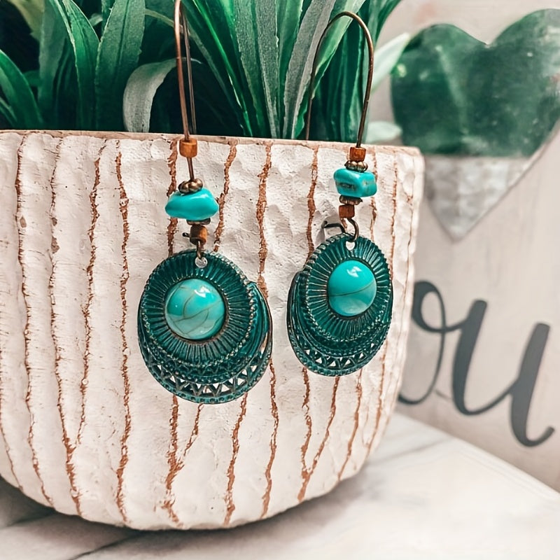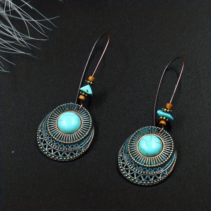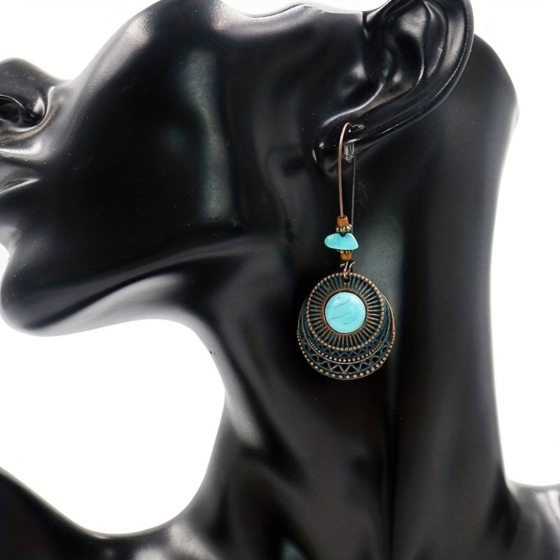 Add a vintage touch to your style with these retro men's earrings featuring turquoise pendants.