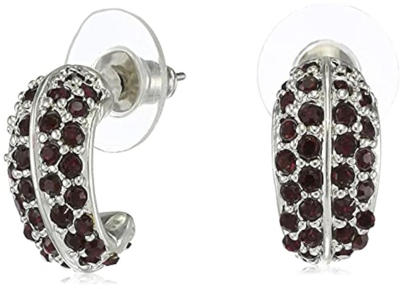 Add a touch of drama to your style with these stunning rhodium plated hoop earrings featuring sparkling Amethyst Austrian crystals.