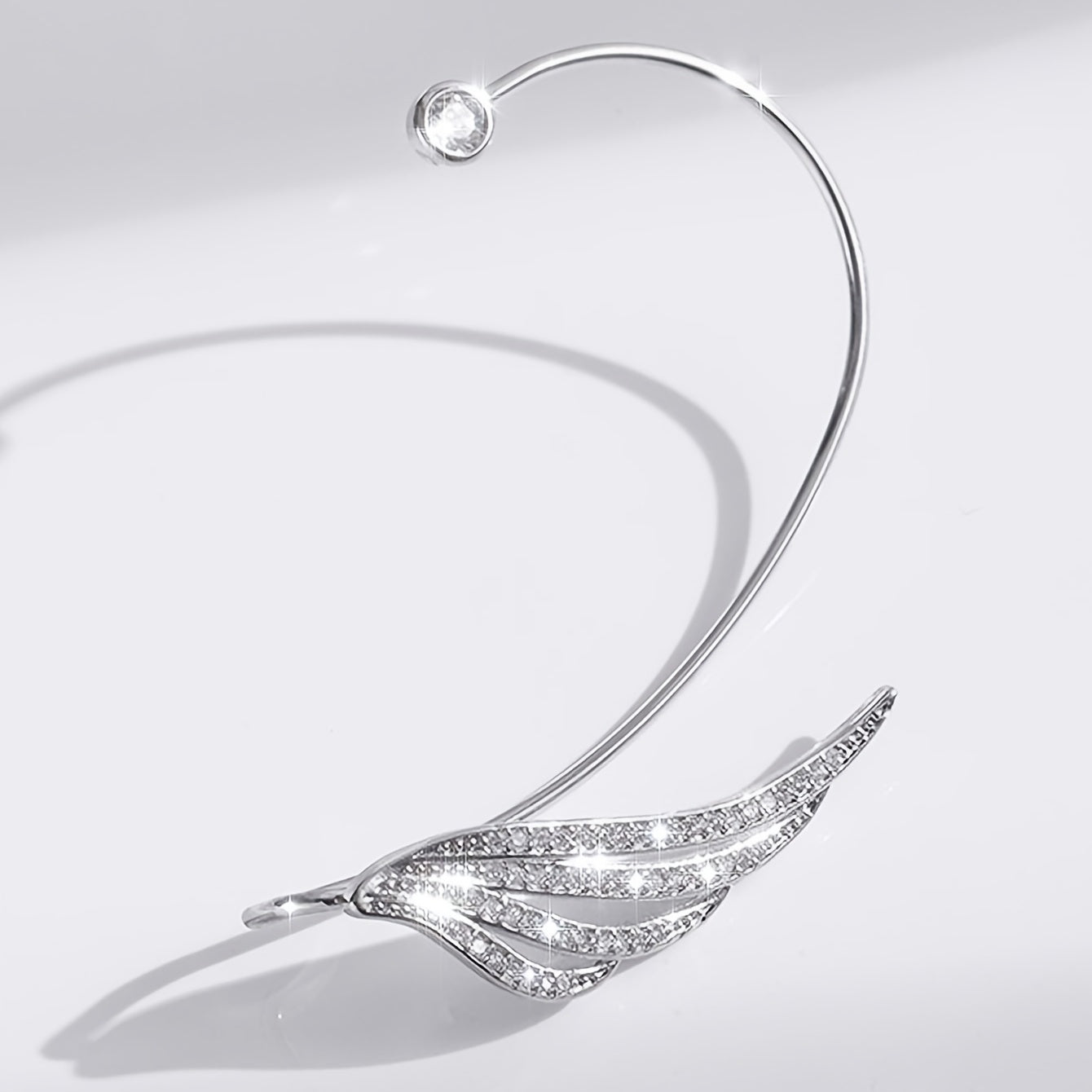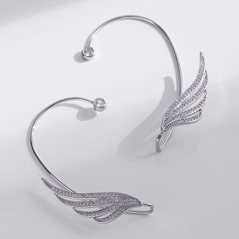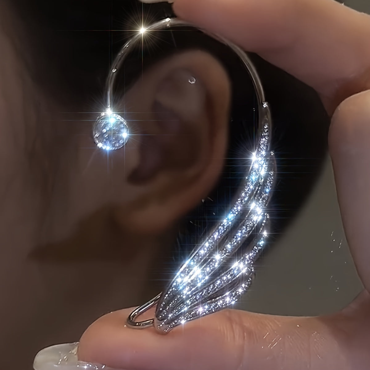 These elegant clip-on earrings feature full rhinestone angel wings, perfect for adding a touch of glamour to any outfit. No piercing is required, as they simply clip on to your earlobes with ease.