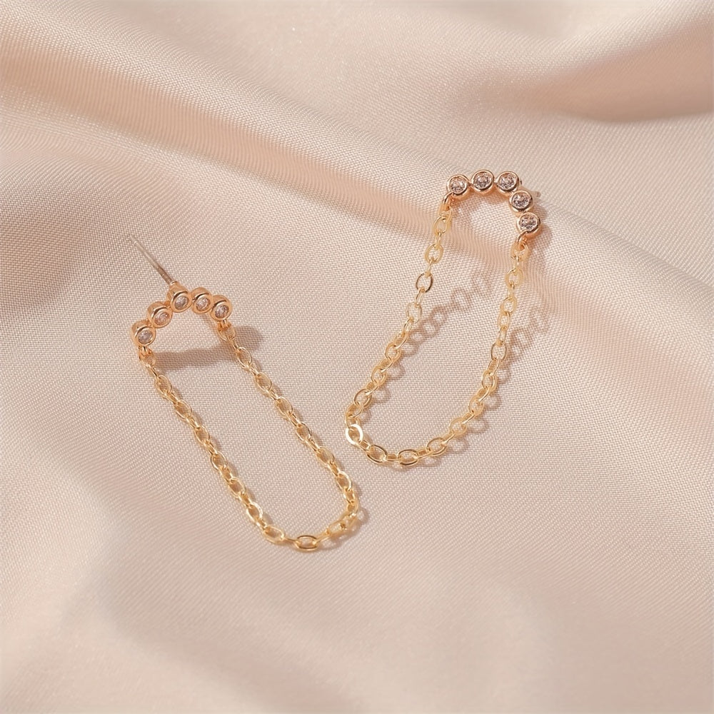 These stud earrings are made of zinc alloy with a chain and rhinestone decoration, perfect for hip hop goth style. Delicate design makes them a great female gift.