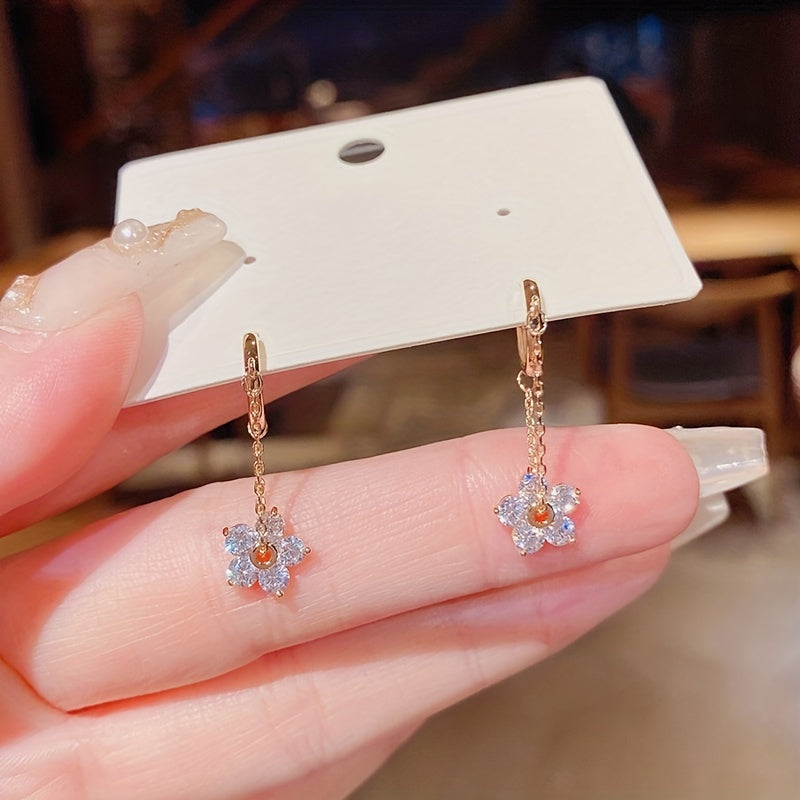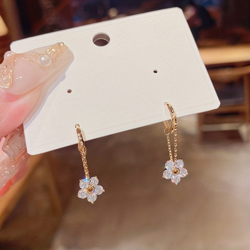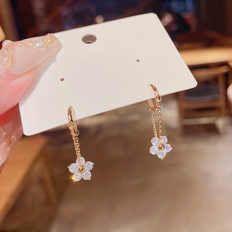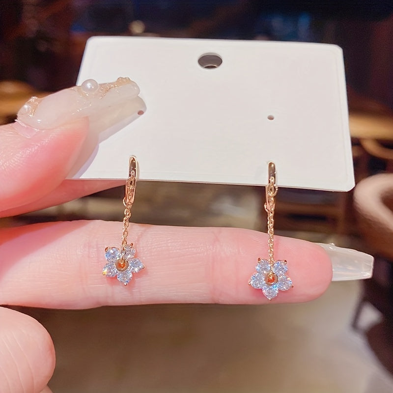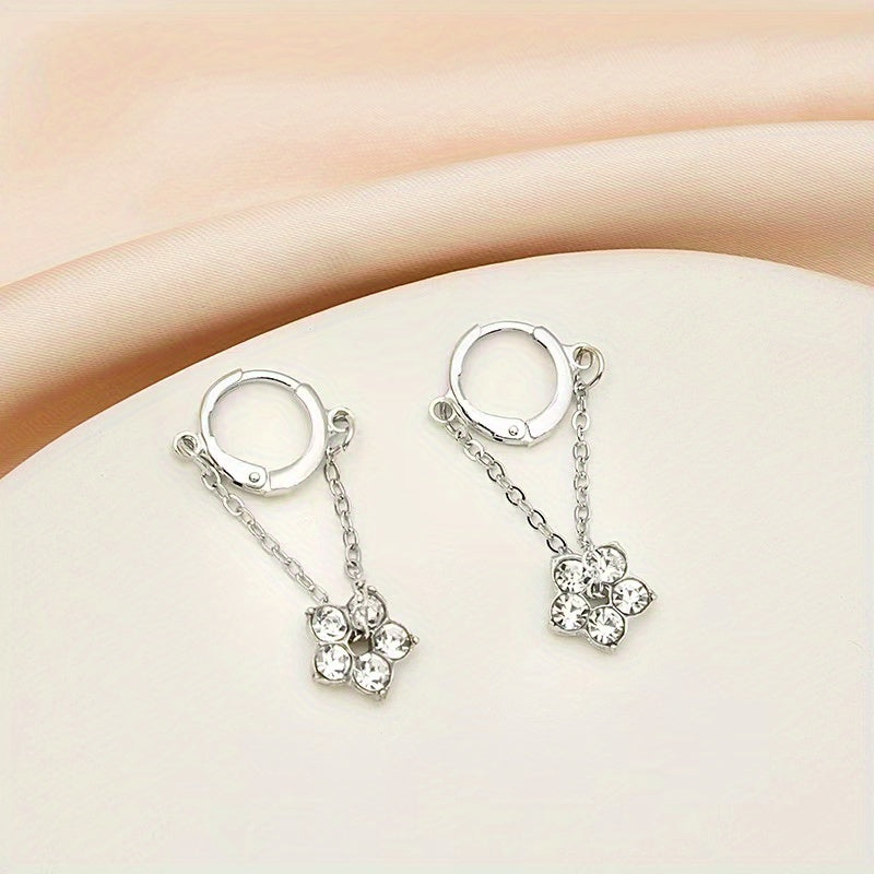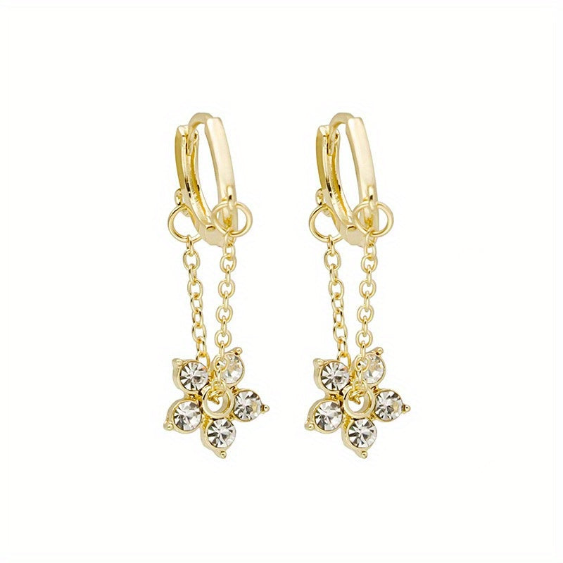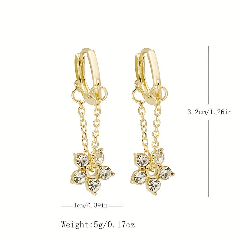 Add a touch of elegance to your outfit with these stunning Rhinestone Flower Drop Earrings. Made of 18K plated material, these earrings are perfect for women and girls. They make a great holiday gift as well.