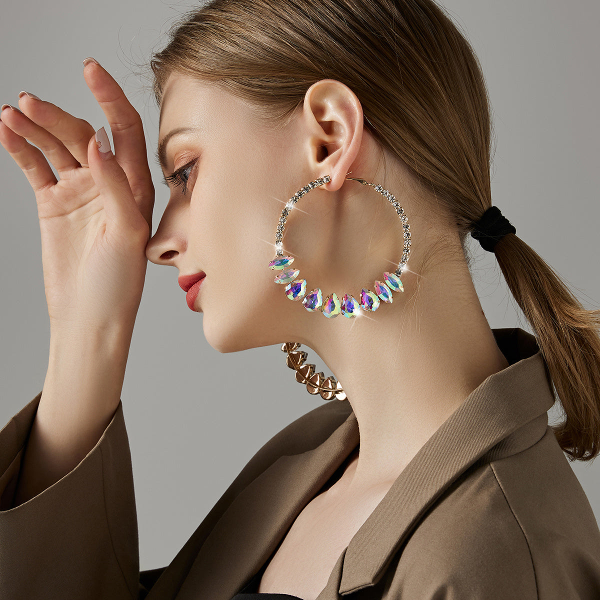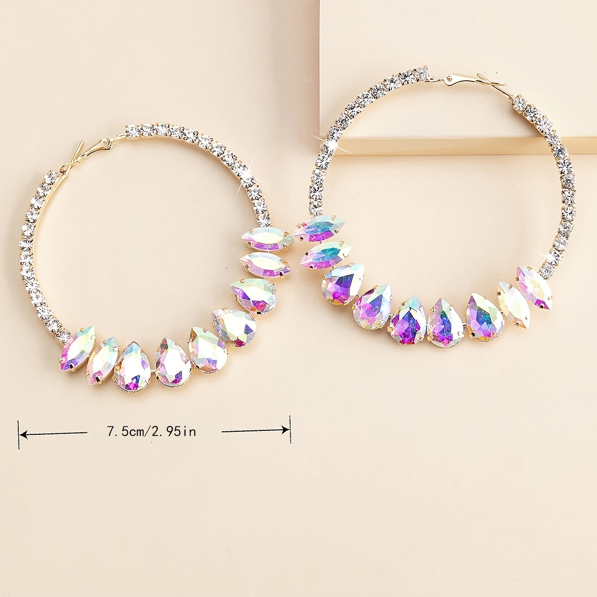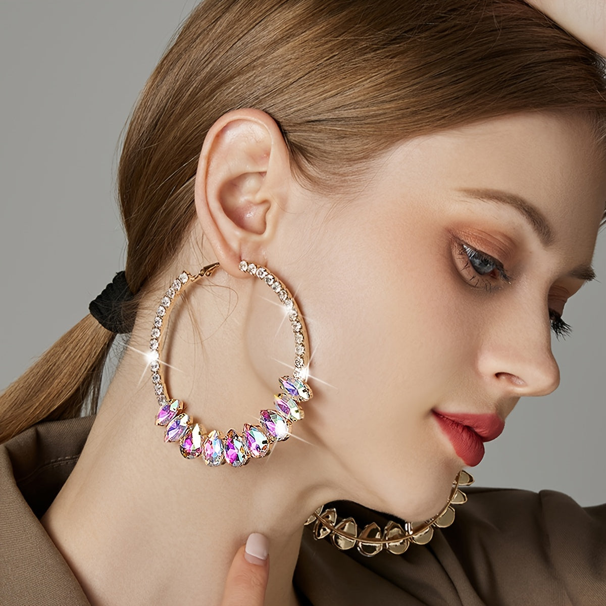 Add a touch of glamour to your outfit with these stunning glass rhinestone hoop earrings. These earrings are 18K plated for a luxurious look and come in a pair.