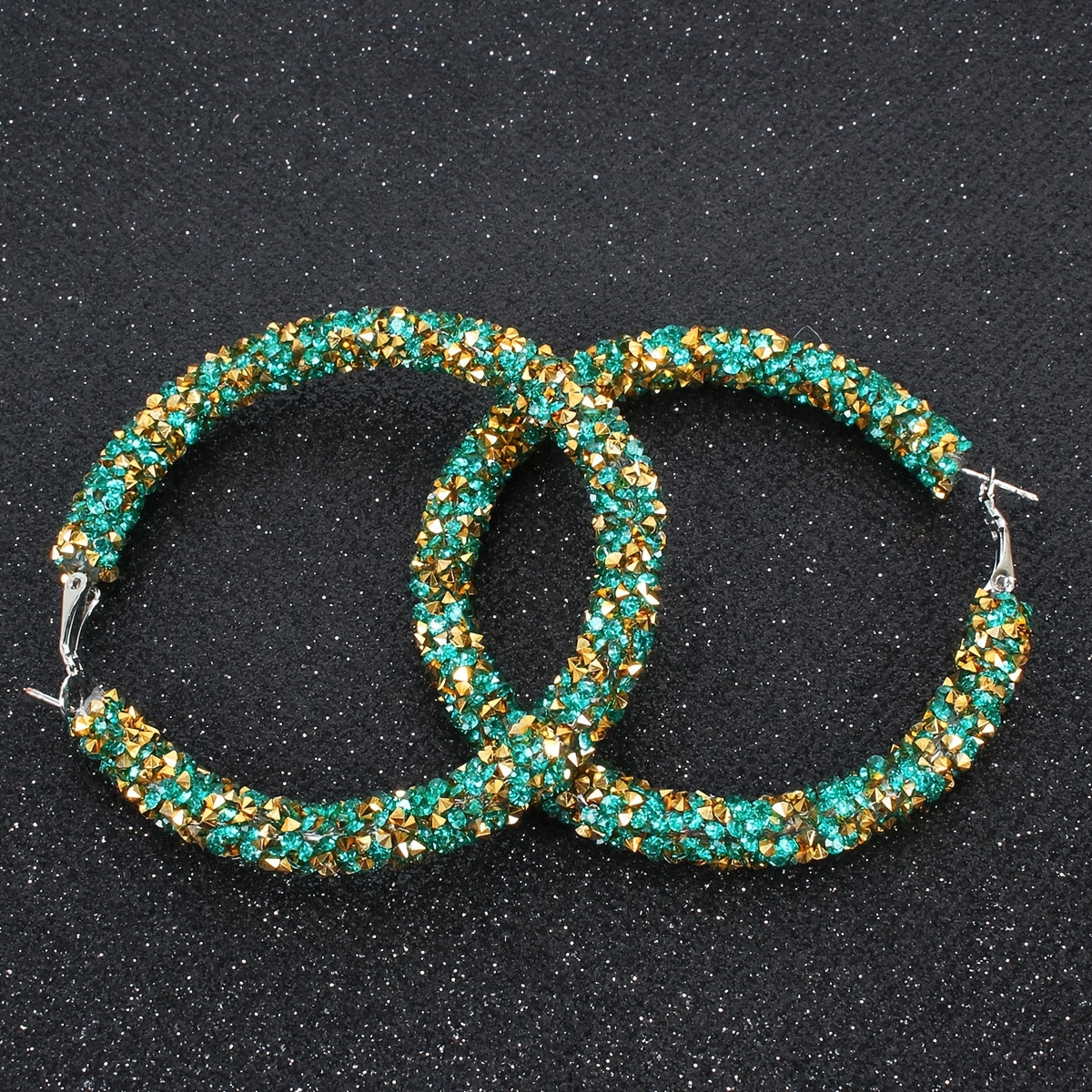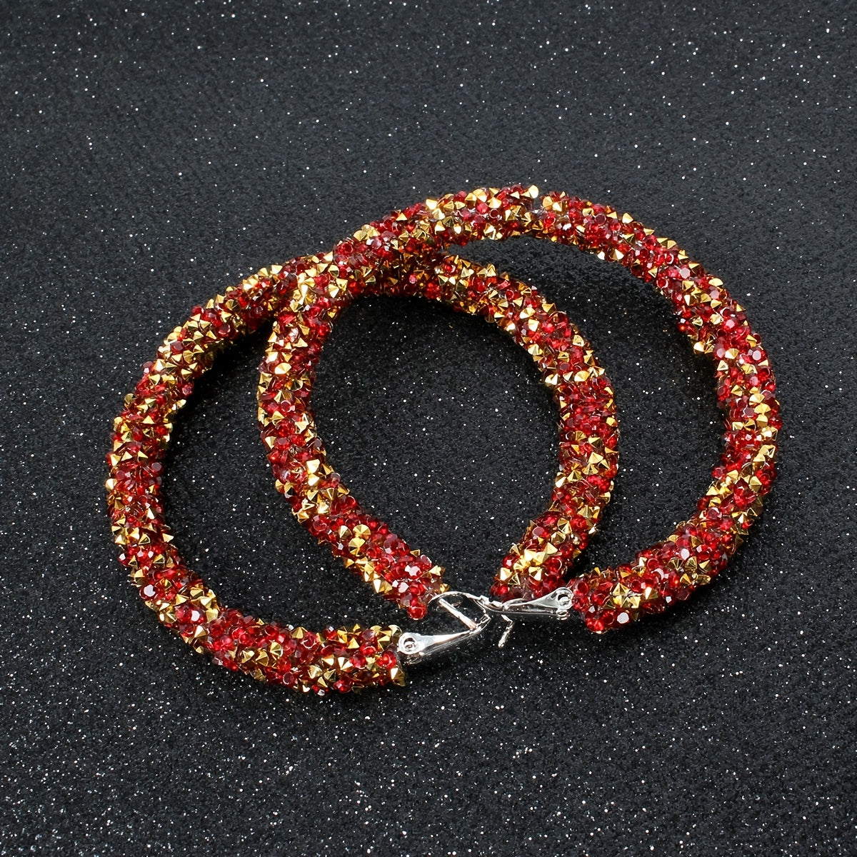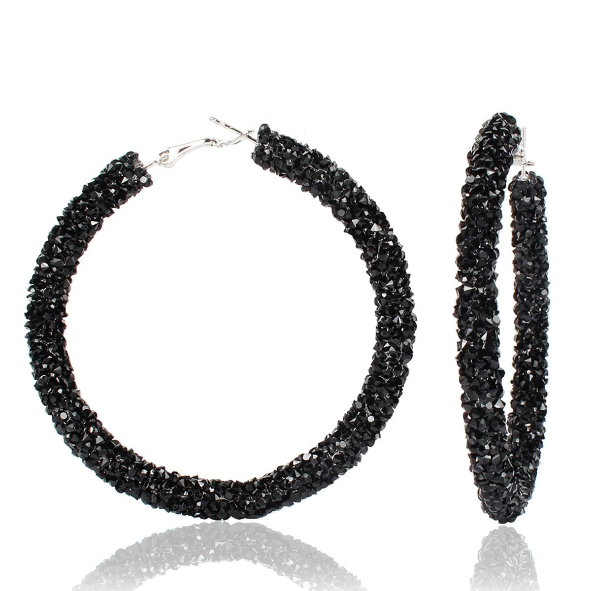 Sparkling alloy rhinestone big hoop earrings perfect for holiday parties and vacation looks.