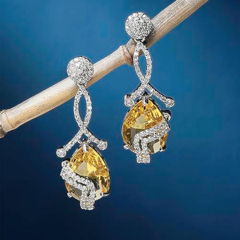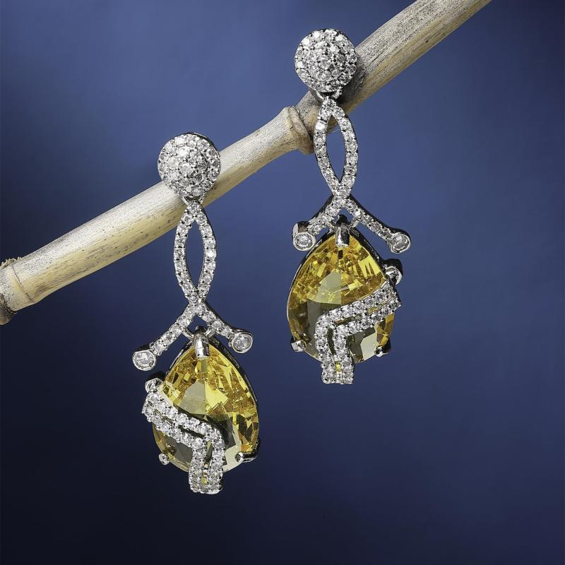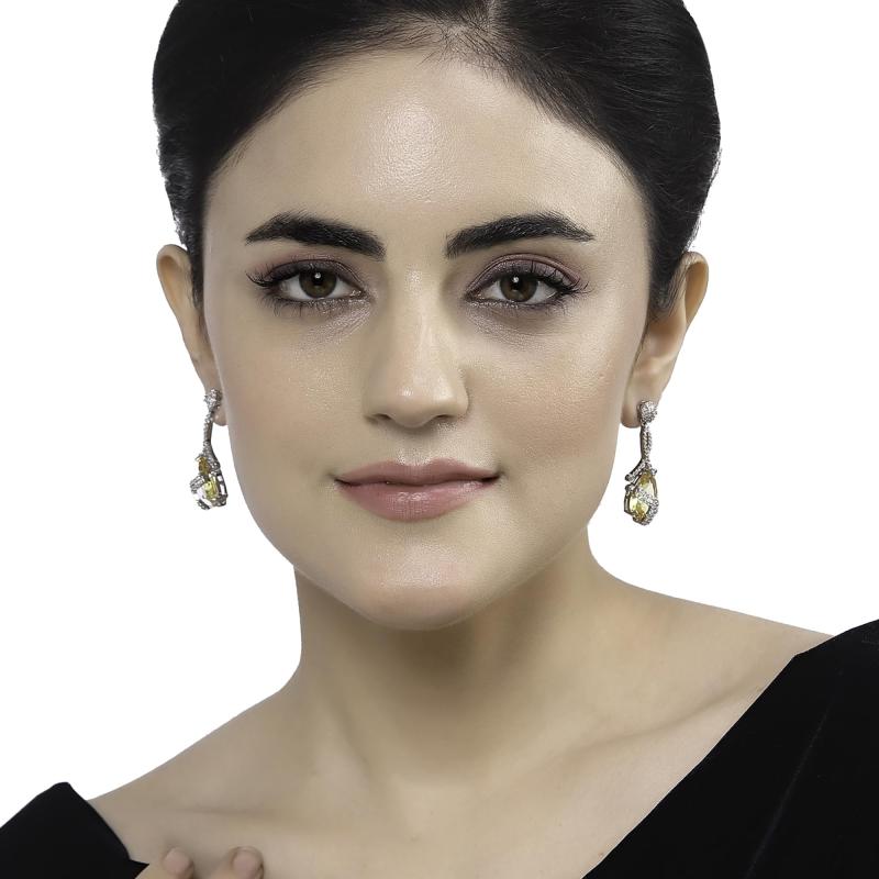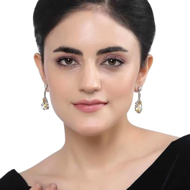 These stunning rhodium-plated earrings feature shimmering diamonds that will give you an elegant look for any occasion.