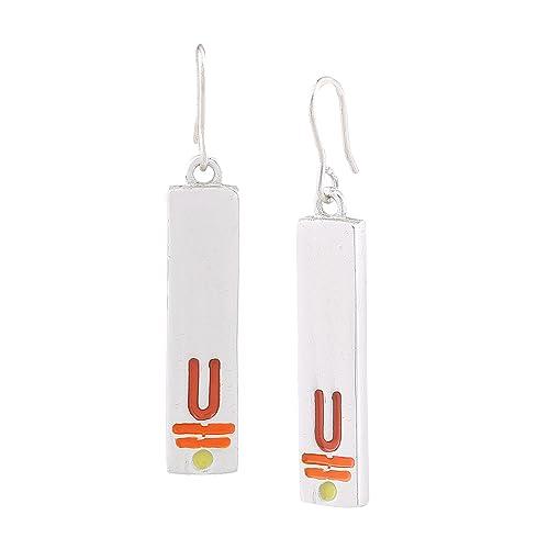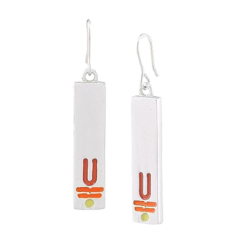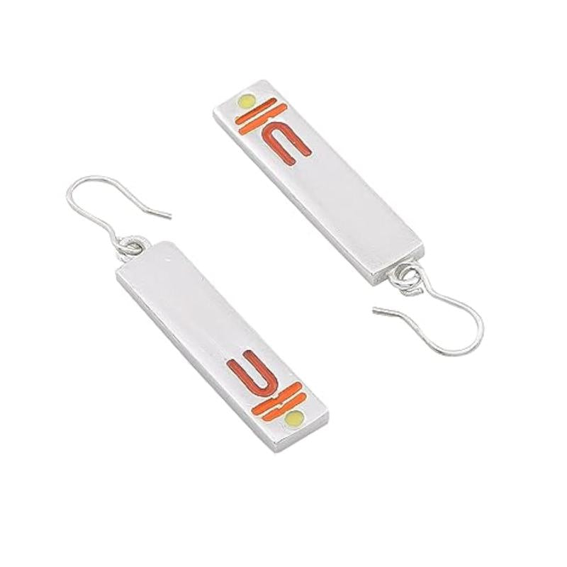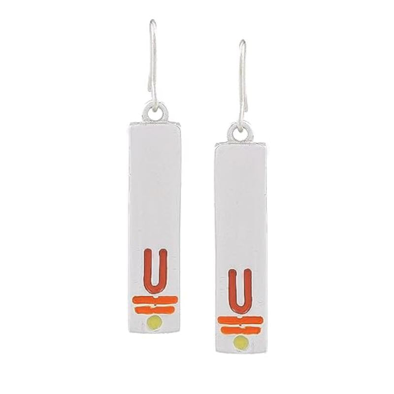 These elegant drop earrings feature a divine enamel pattern inspired by Vishnu. Made with rhodium plating for a luxurious finish.