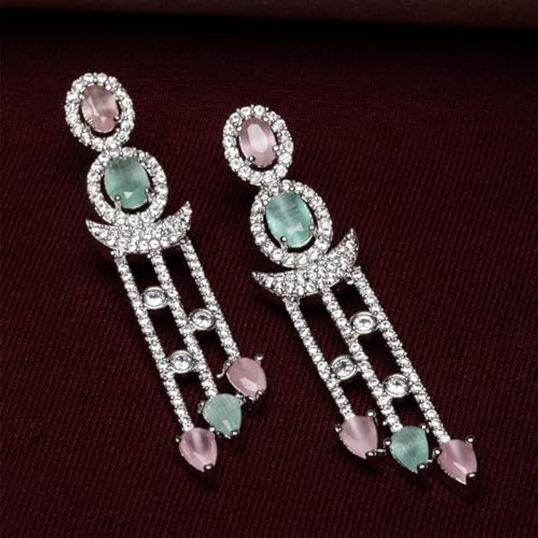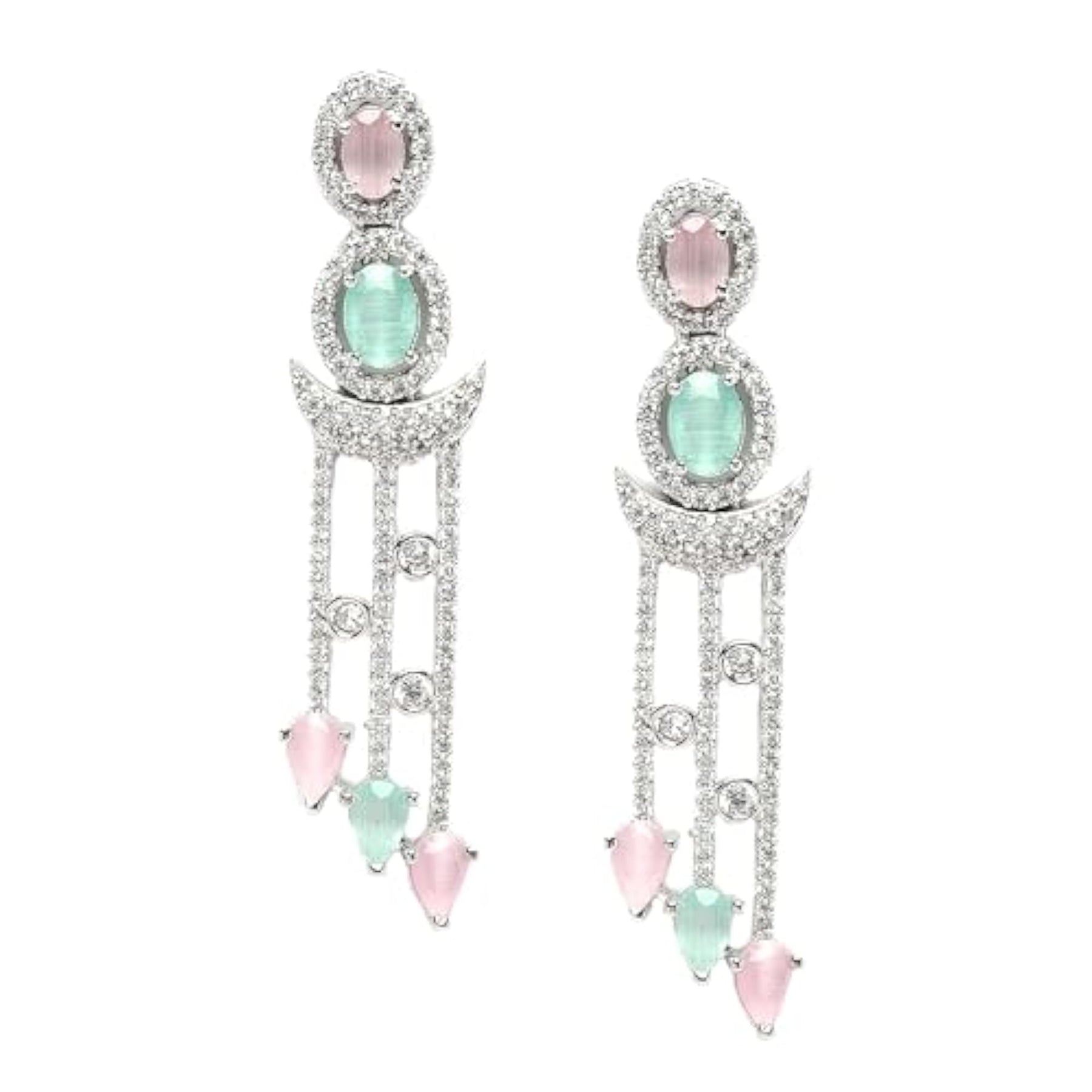 Elegant earrings with sparkling American diamonds and a crescent shape design.