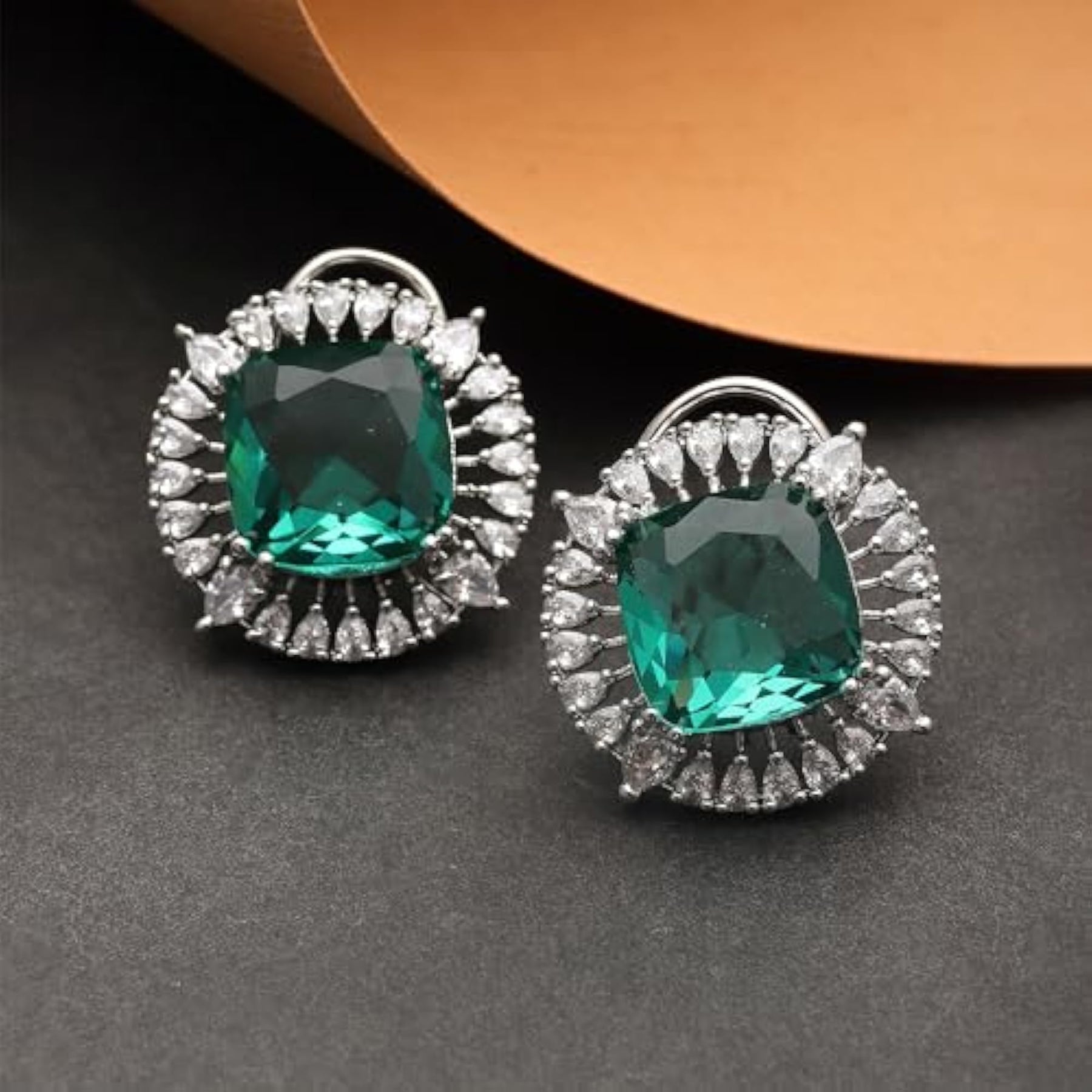 Elegant and stylish stud earrings with American diamond studded contemporary round design.