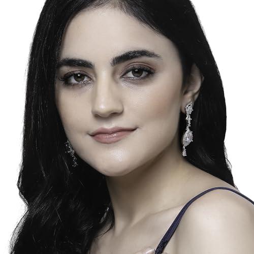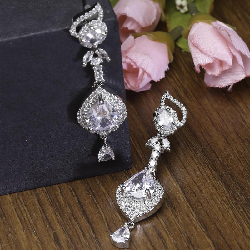 Rhodium-Plated American Diamond Teardrop Drop Earrings