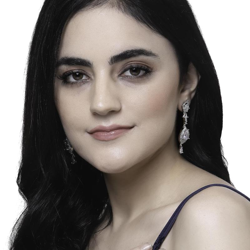 Elegant handcrafted earrings with American diamond studded teardrop design.