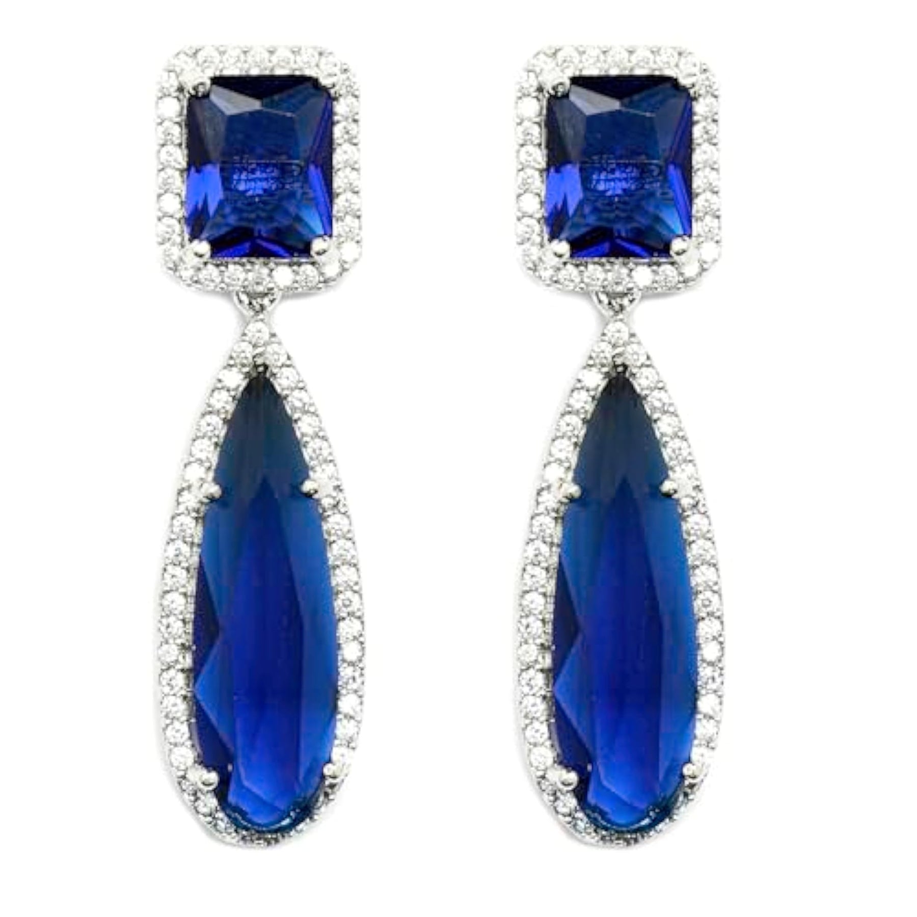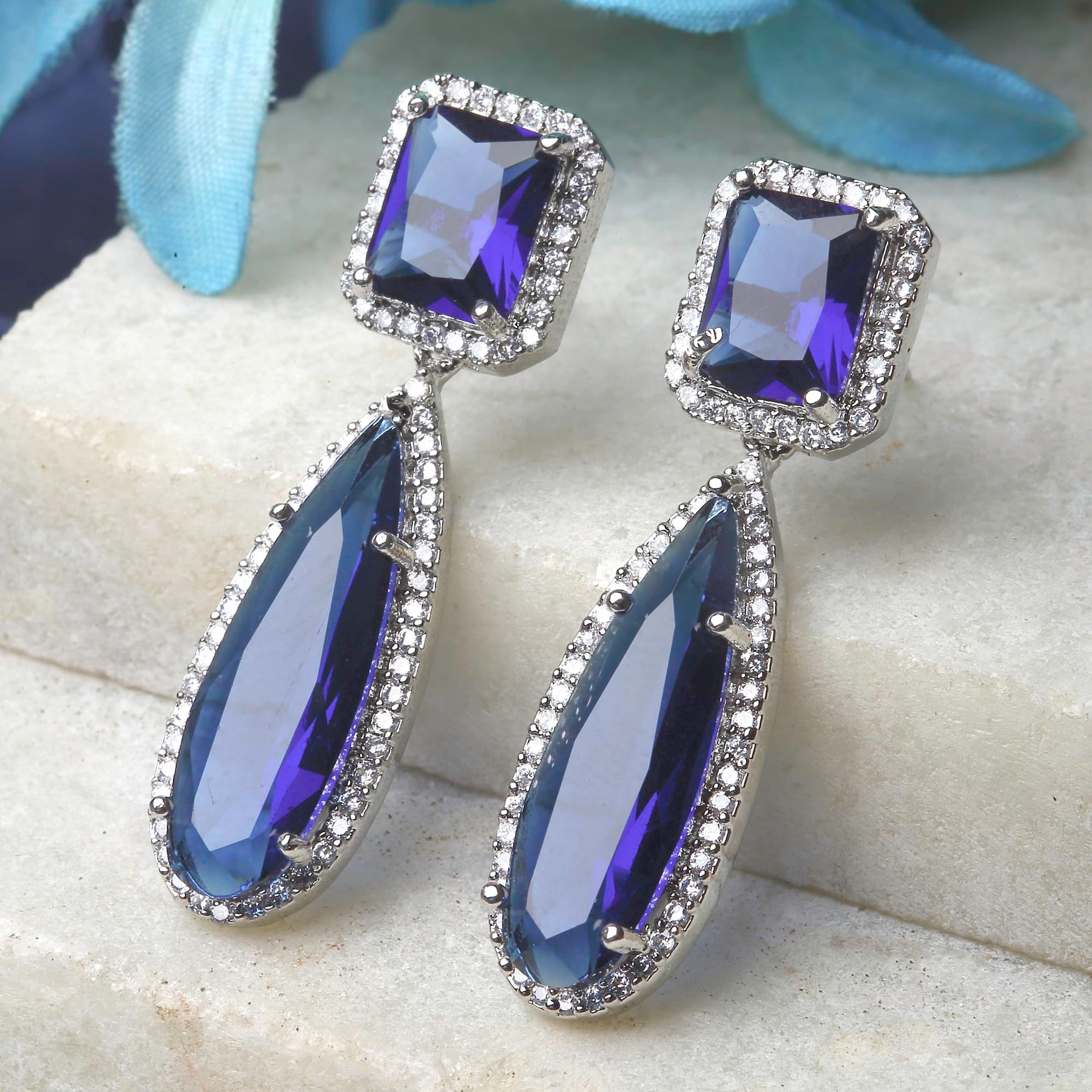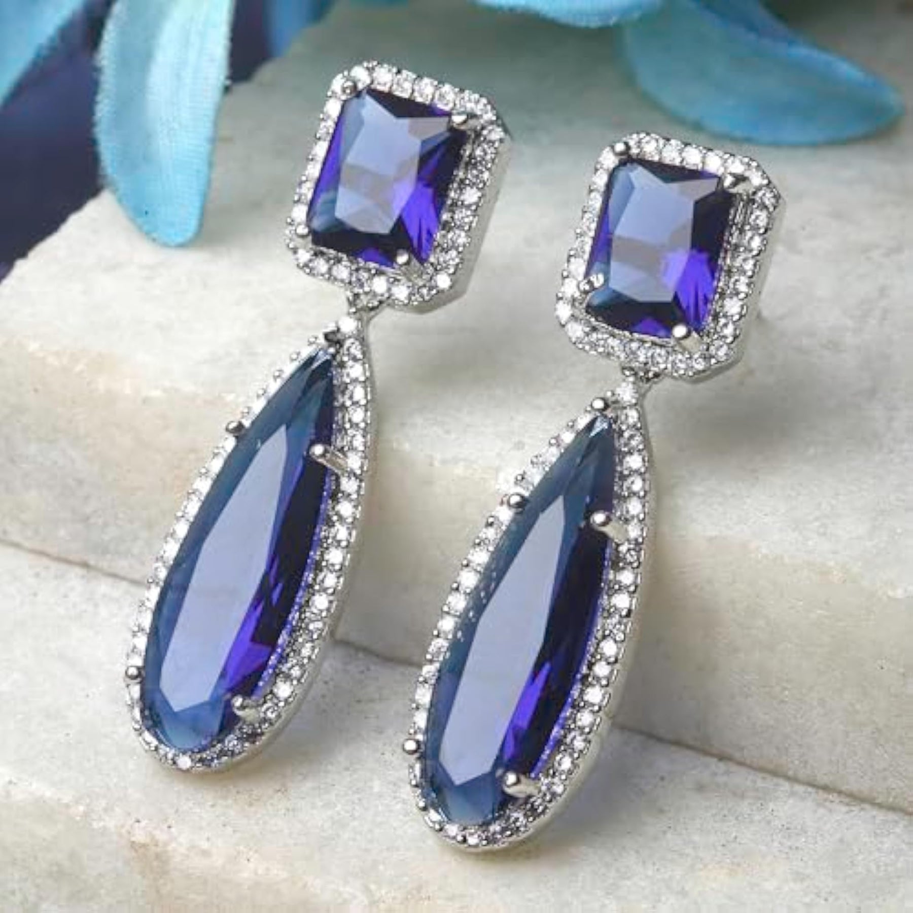 Elegant teardrop-shaped drop earrings with American diamond studding, perfect for any occasion.