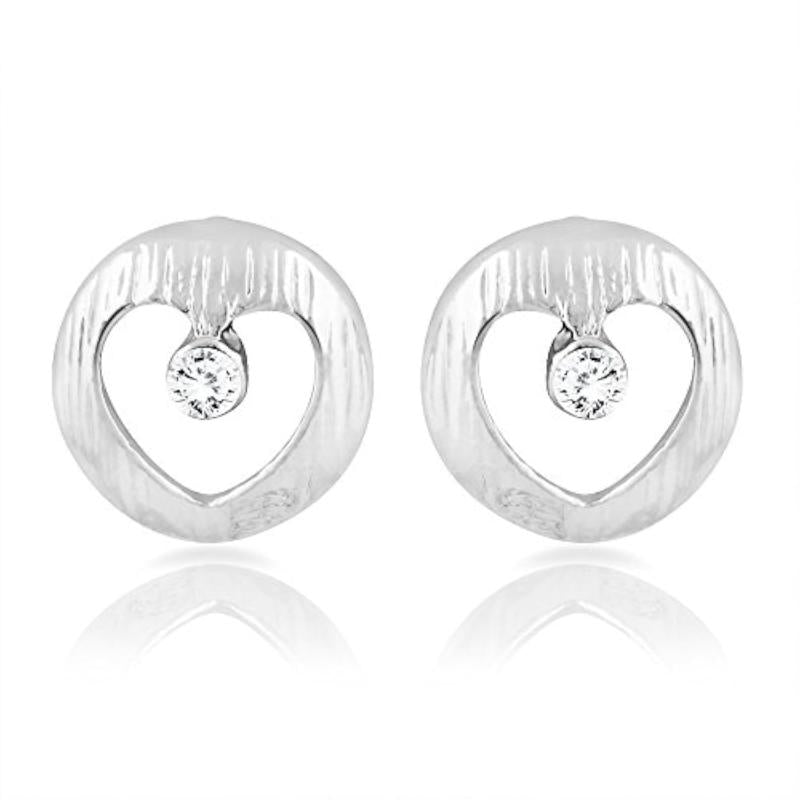 These elegant stud earrings feature a heart inside a circle design with sparkling crystals. Made with rhodium plating for a stunning finish.