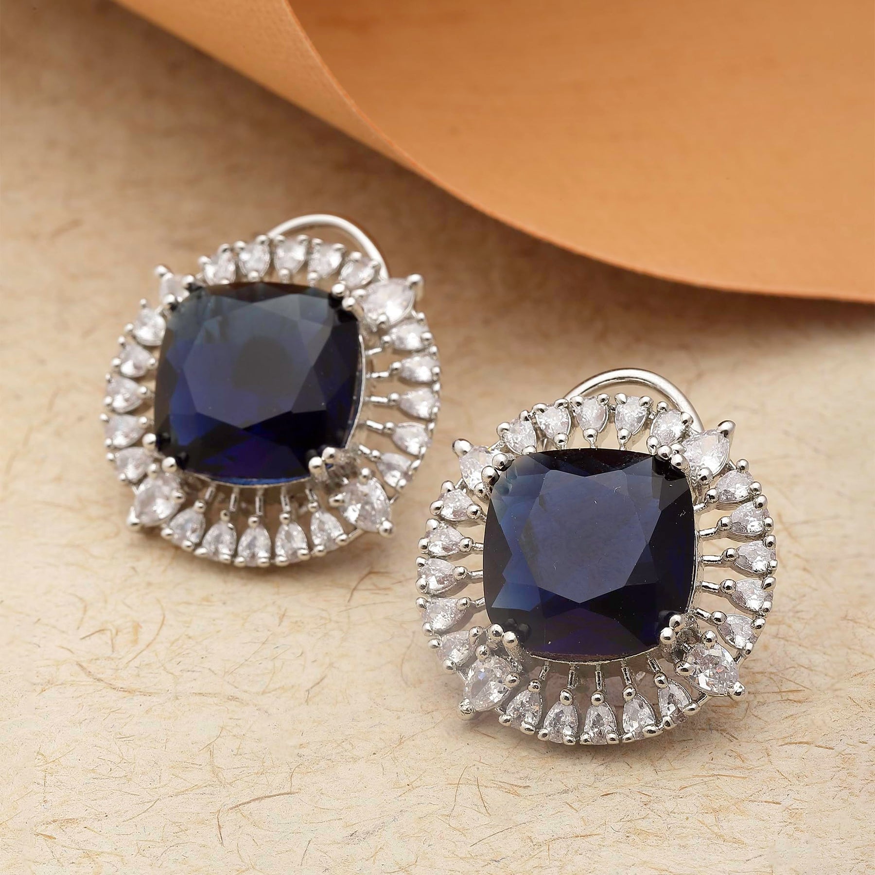 Elegant rhodium-plated stud earrings with American diamond studding in a contemporary round shape.