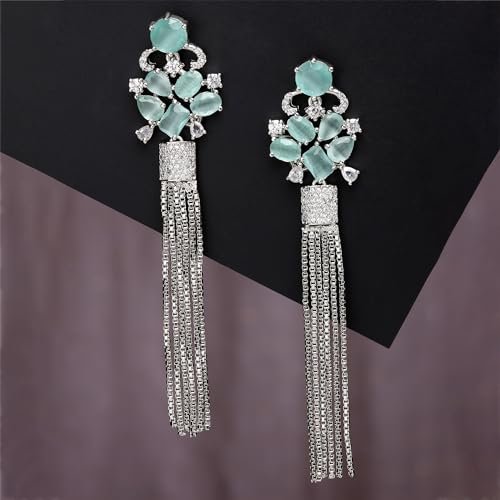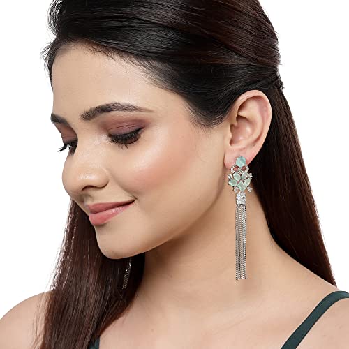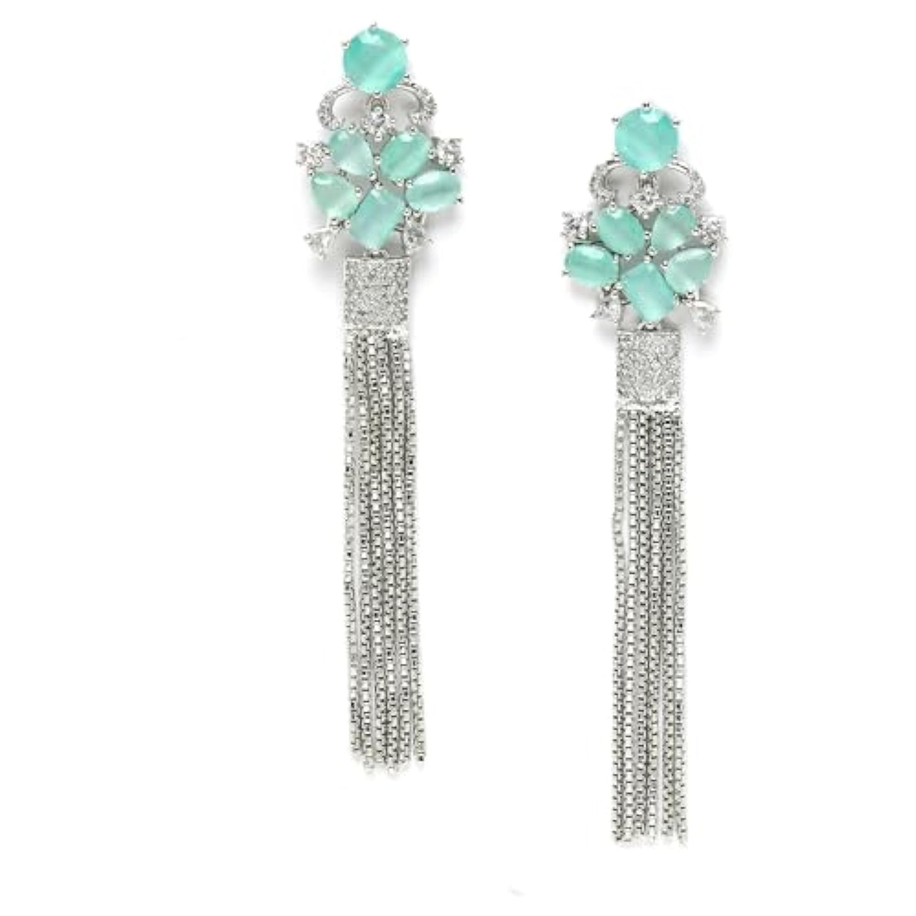 Elegant rhodium plated drop earrings with a contemporary design.