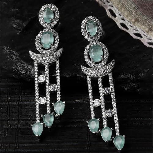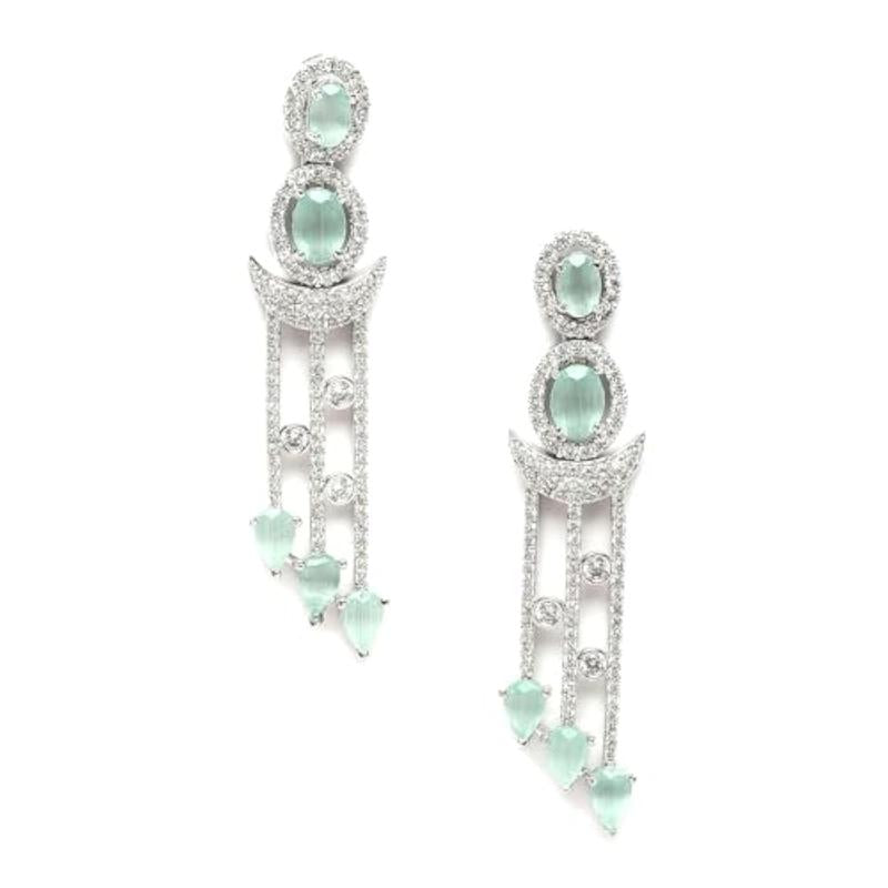These elegant drop earrings feature rhodium plating and sparkling American Diamond accents for a glamorous look.