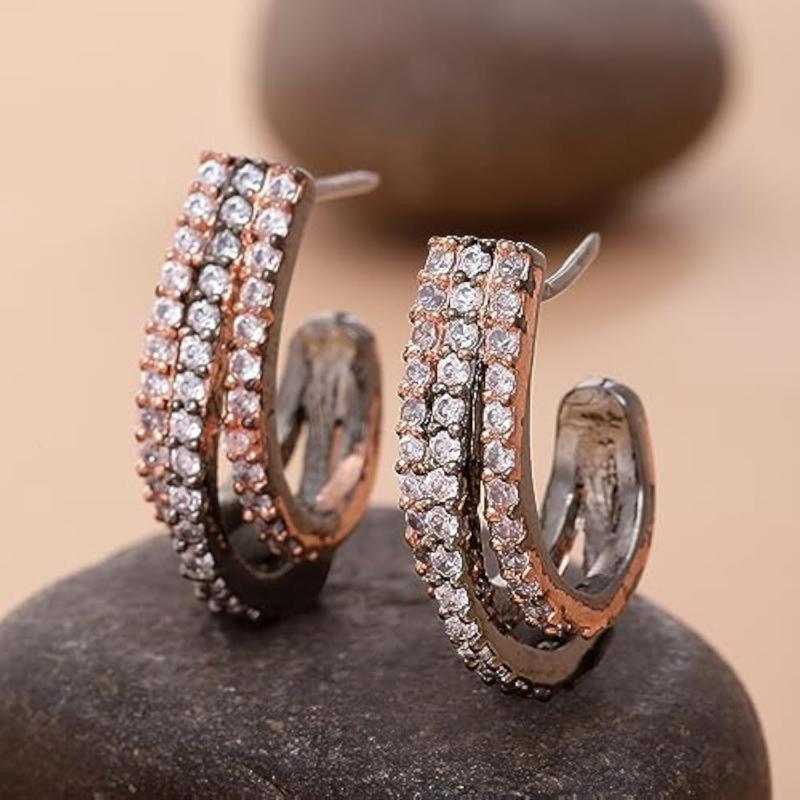 These handcrafted stud earrings feature a beautiful floral design studded with American diamonds. The rhodium plating adds an elegant touch to your look.