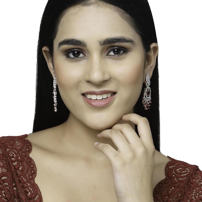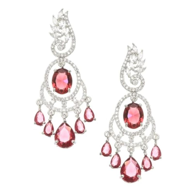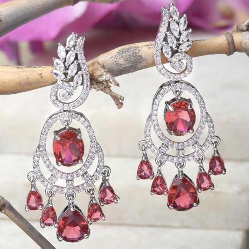 Elegant earrings with American diamond studded oval and leaf shapes.