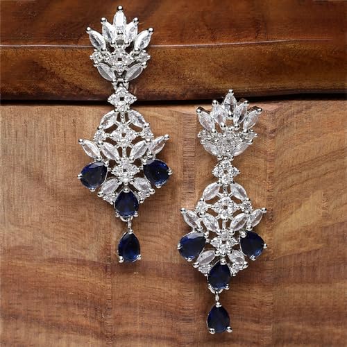 Elegant rhodium-plated drop earrings with American diamond spikes.