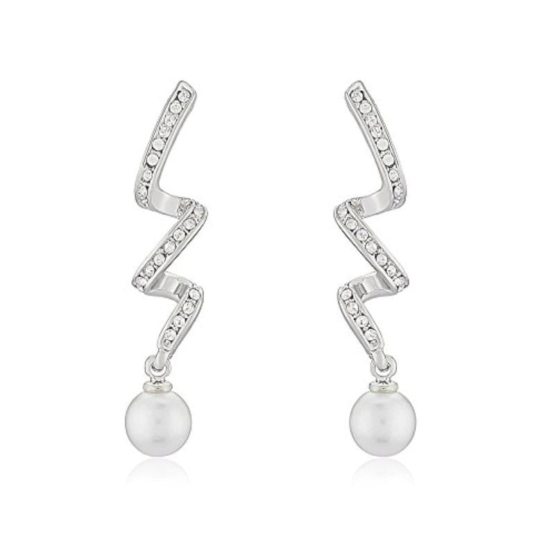 Elegant earrings featuring a unique spiral design with shimmering crystals and lustrous pearls.
