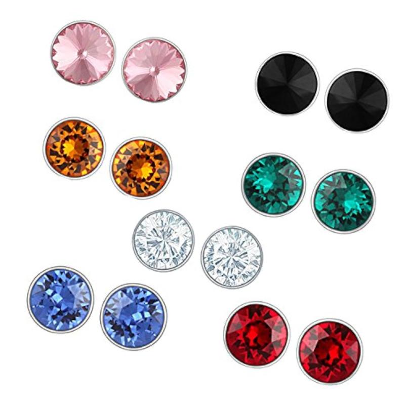 This combo set includes 7 pairs of stunning brass stud earrings with Swarovski crystals. Perfect for adding a touch of elegance to any outfit.